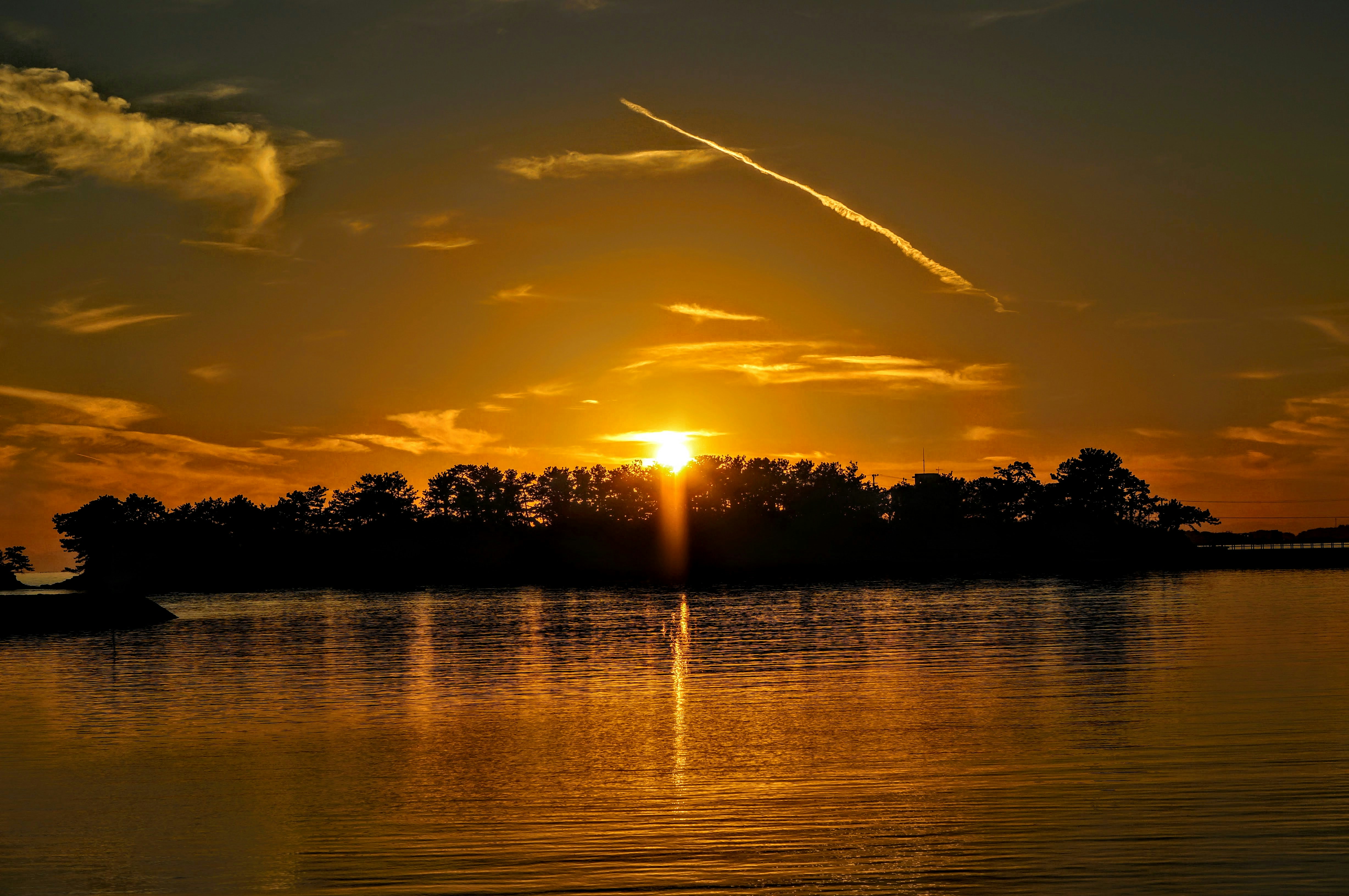 a sunset over a lake