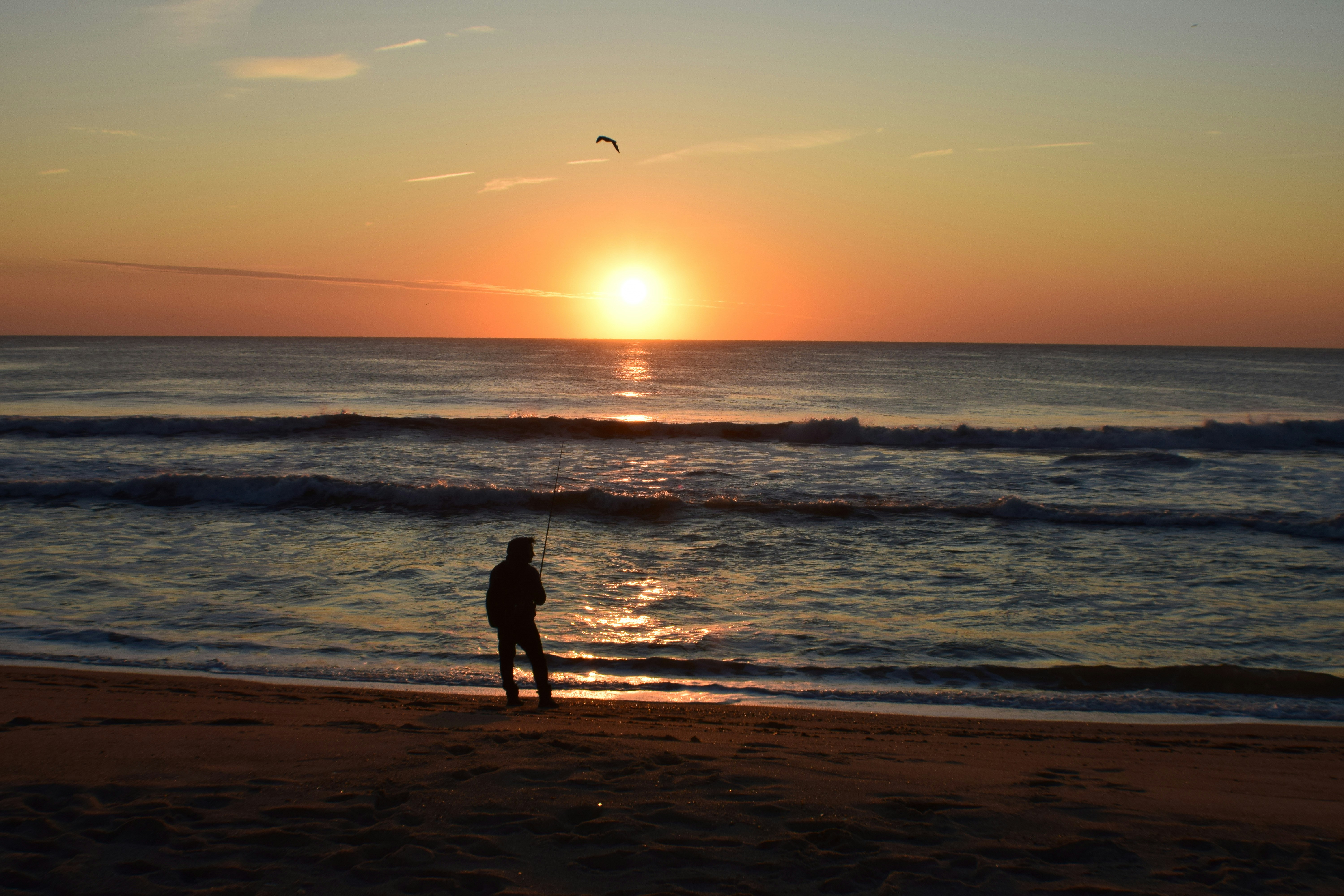 Fishing from the beach at sunrise.