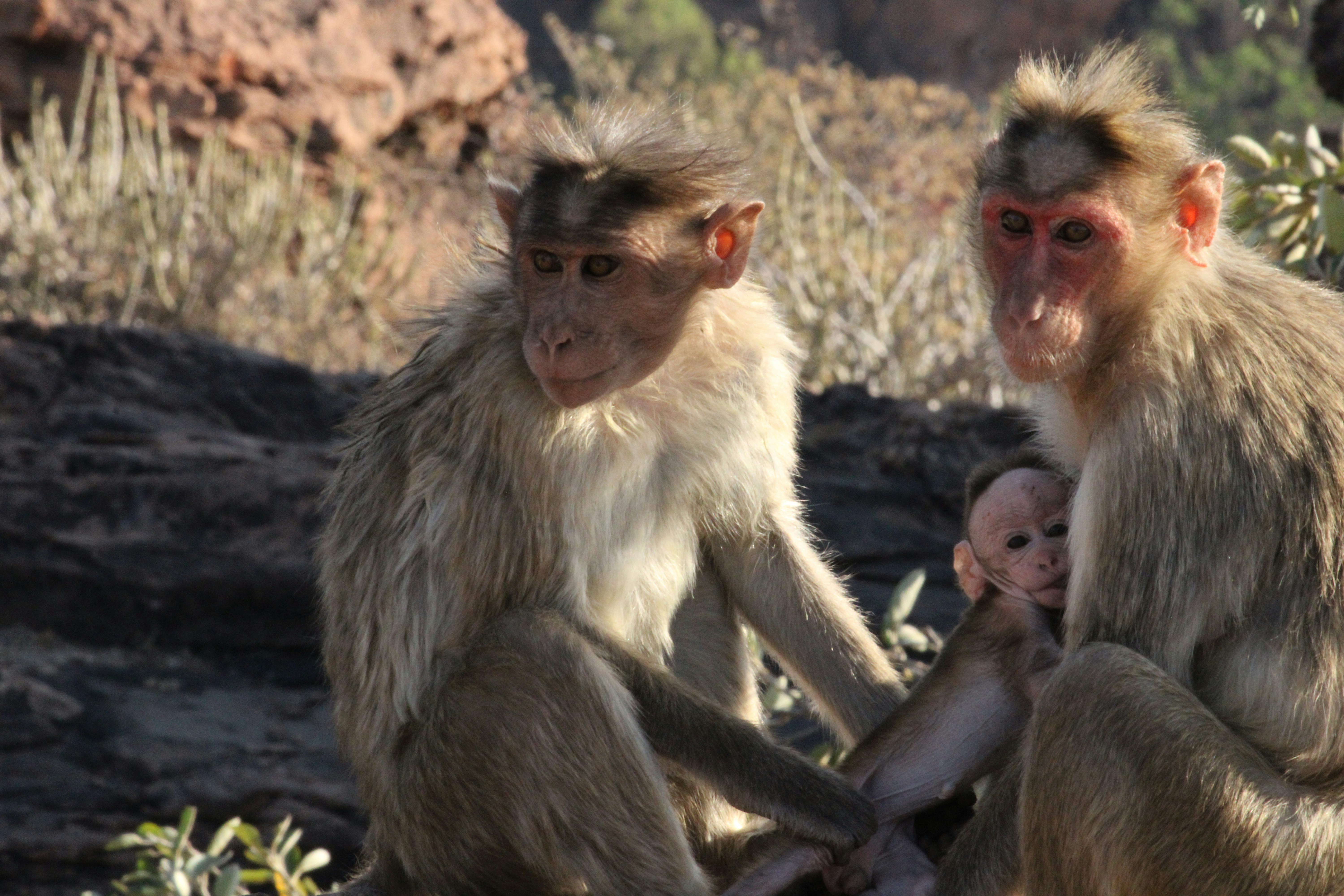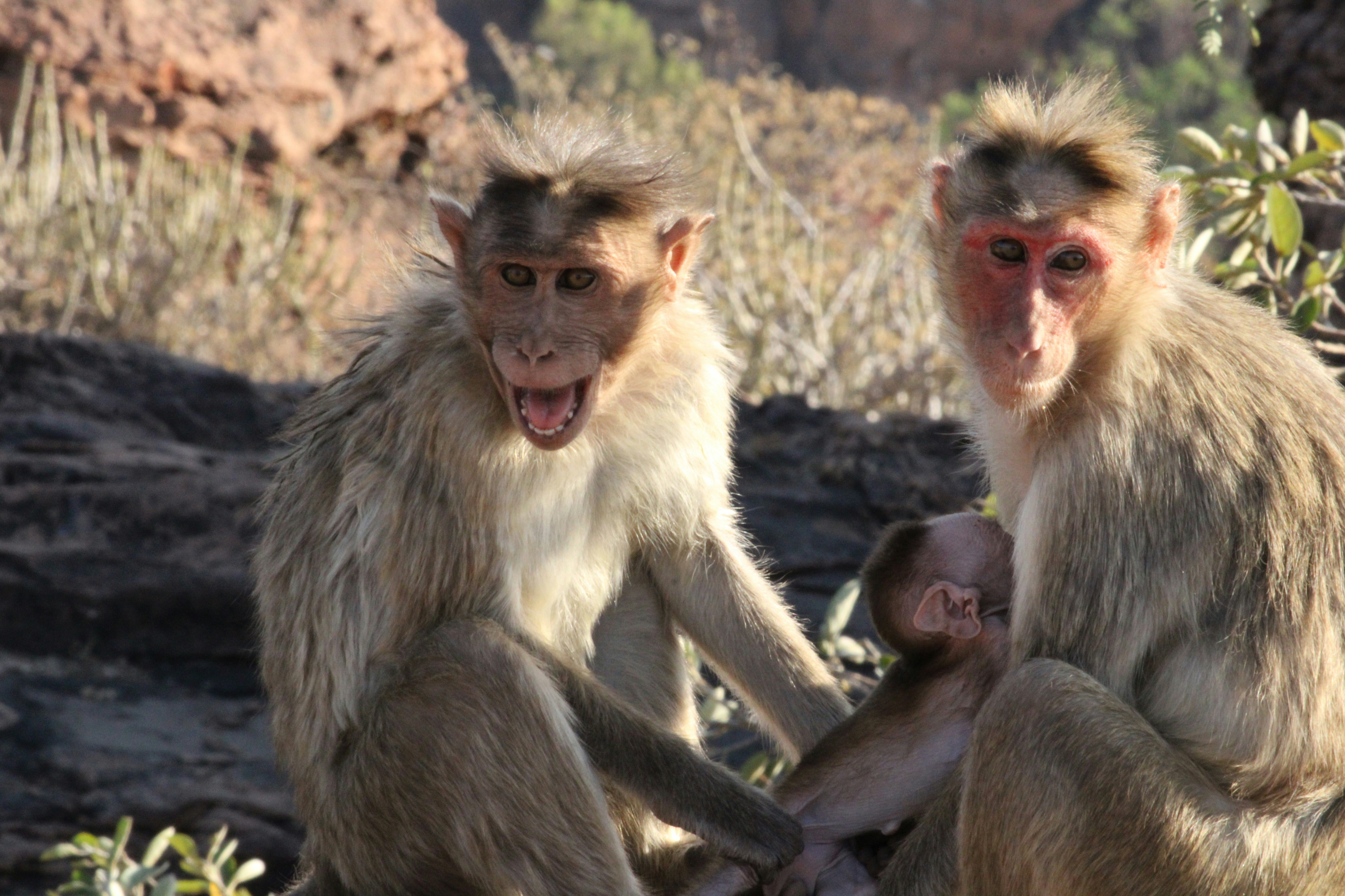 Bonnet Macaque Monkey Family