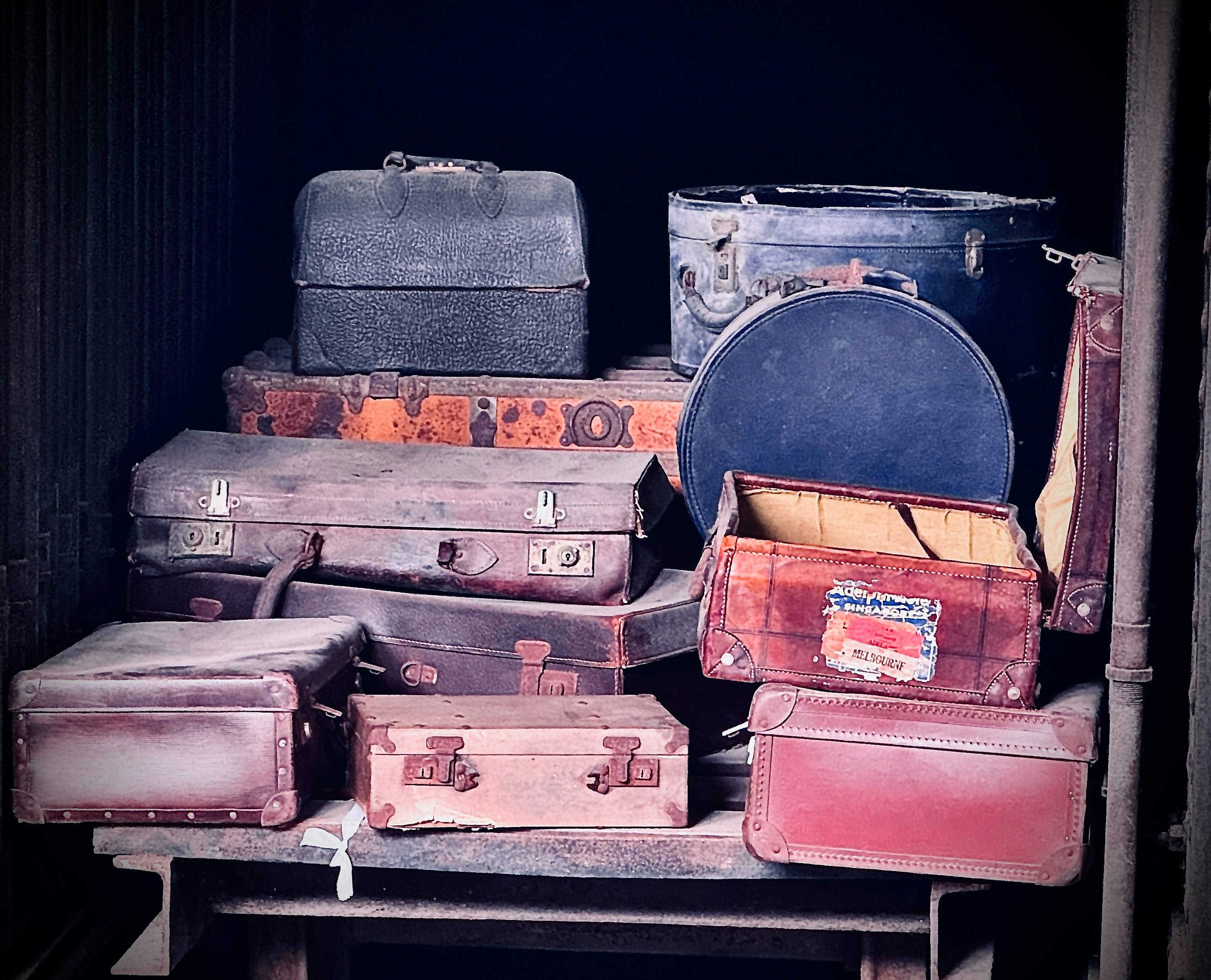 Retro style suitcases neatly stacked. Times gone by before suitcases were lightweight. However these cases have lasted over time. I love the old fashioned look of them, it takes me back to a time now past. It makes me smile to think of when traveling the clasp would sometimes spring open, even when locked. I think these cases still have more style.
