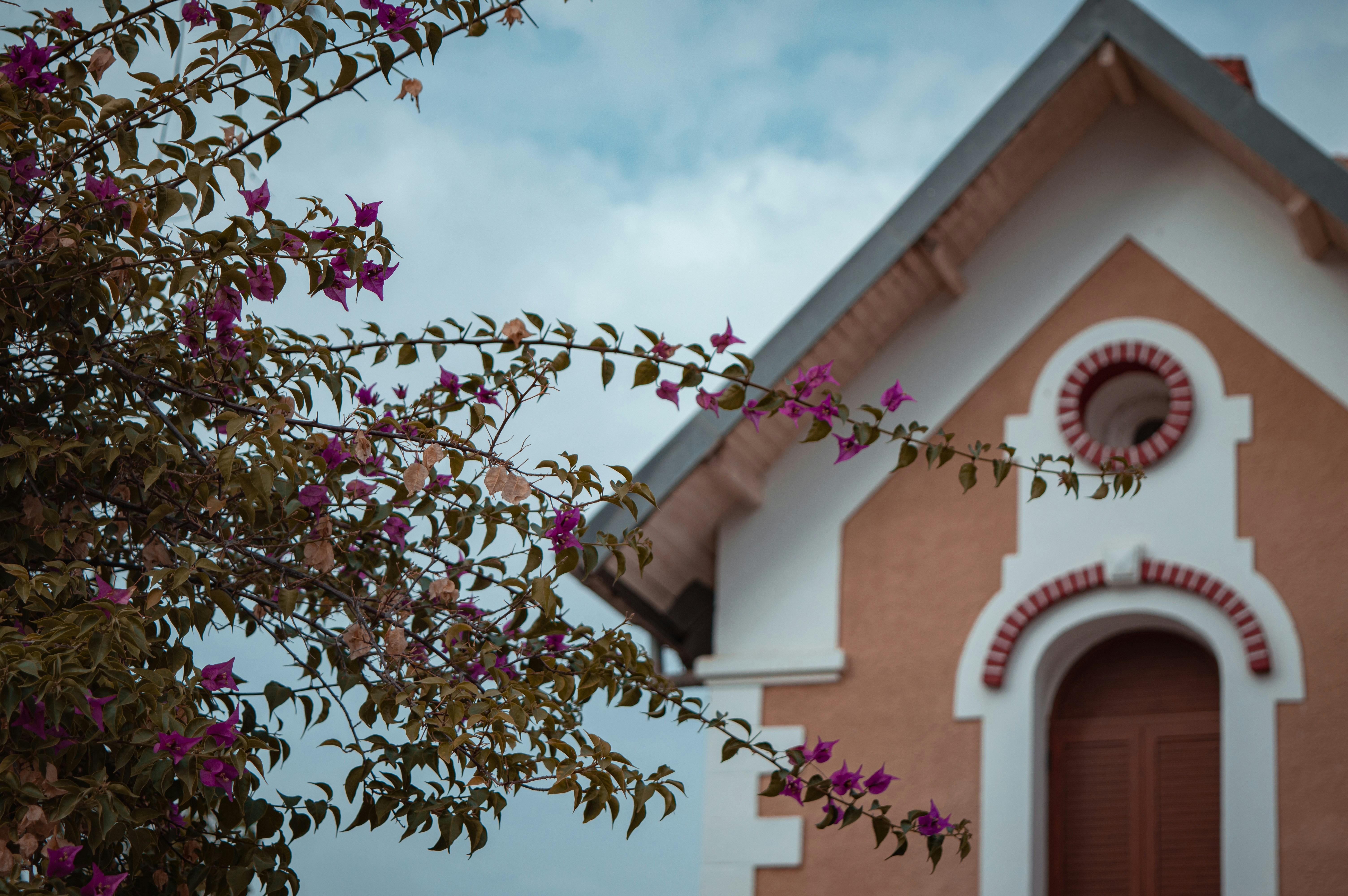 a church with a clock on the front of it