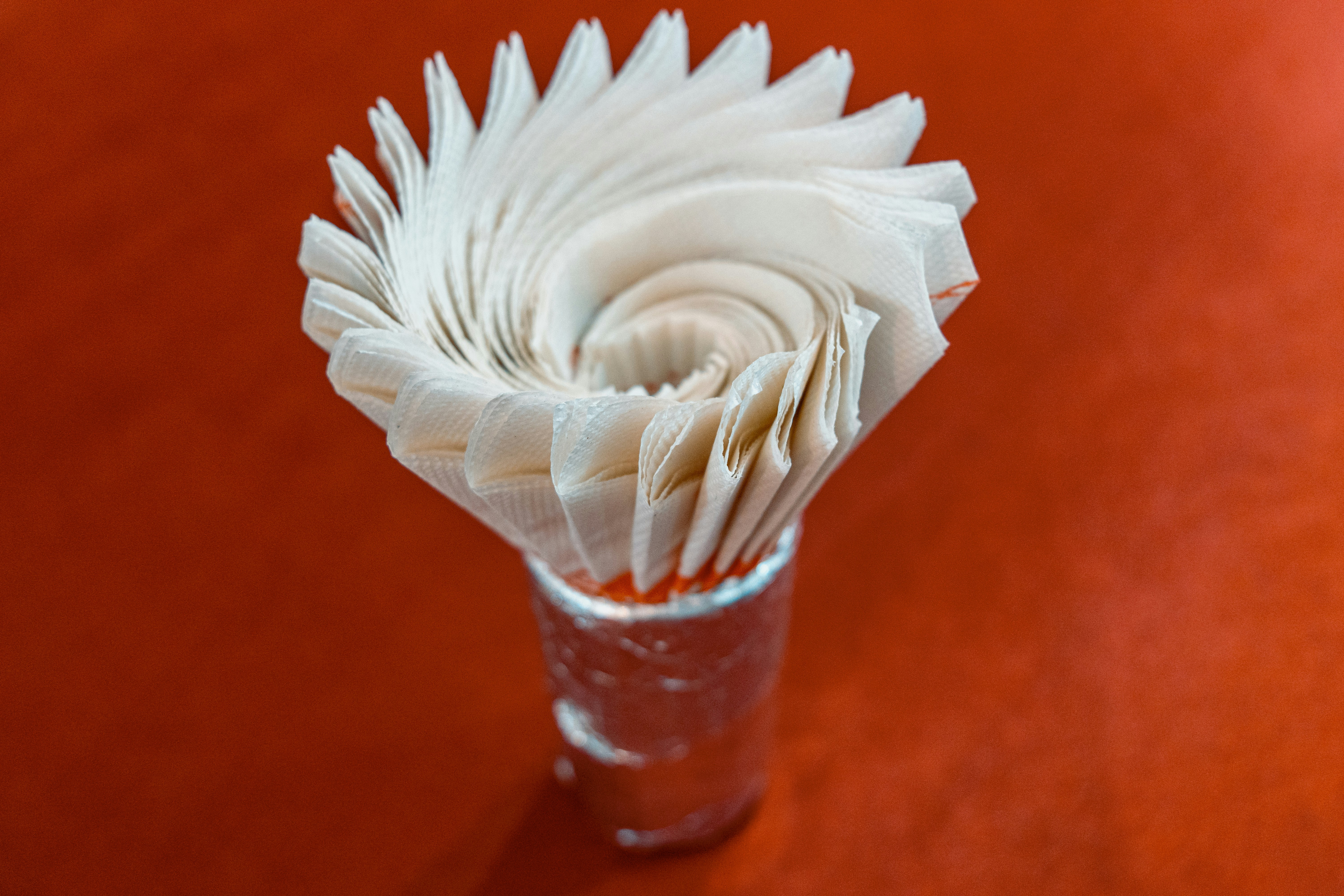 A small glass vase with a white flower in it