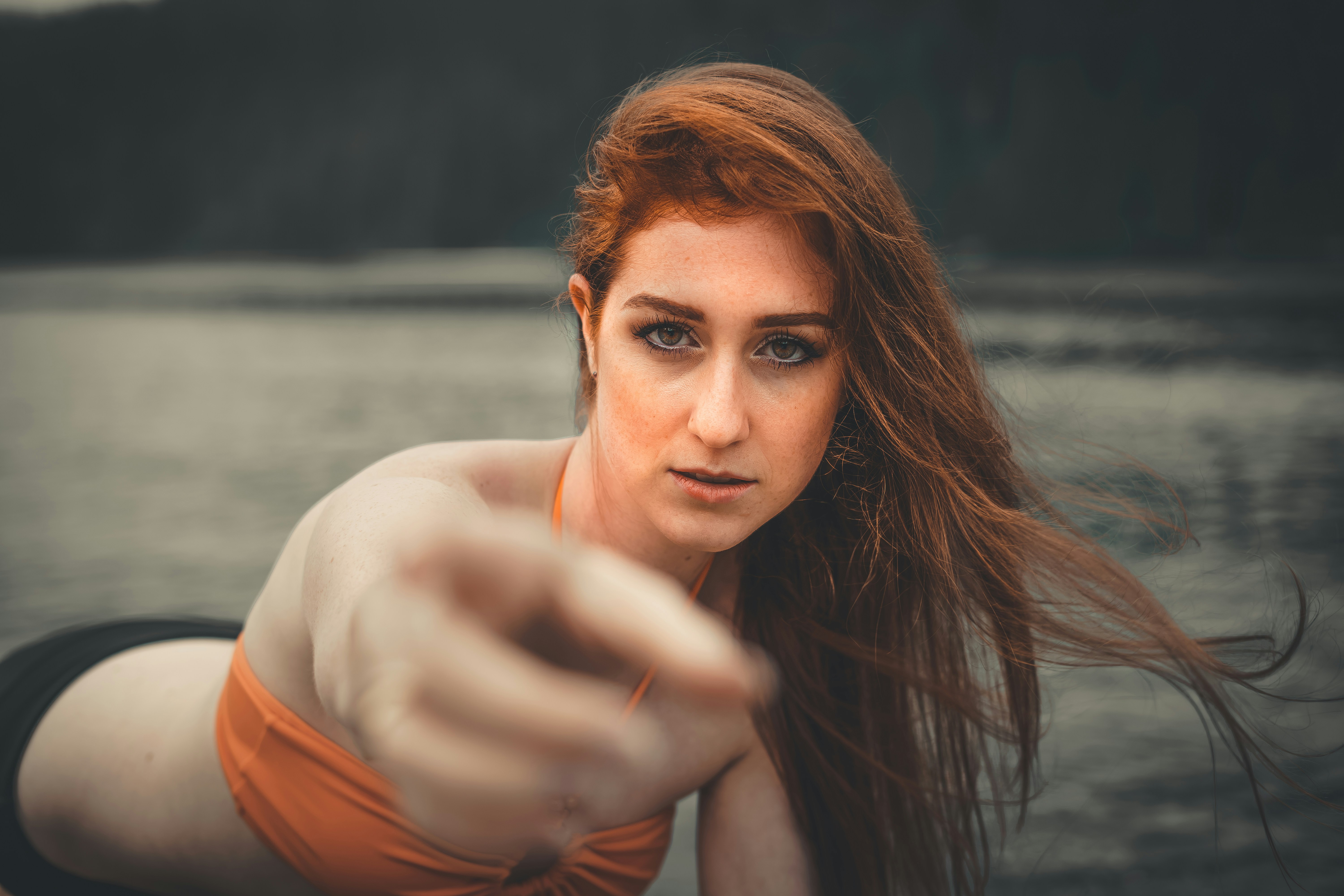 woman in orange tank top