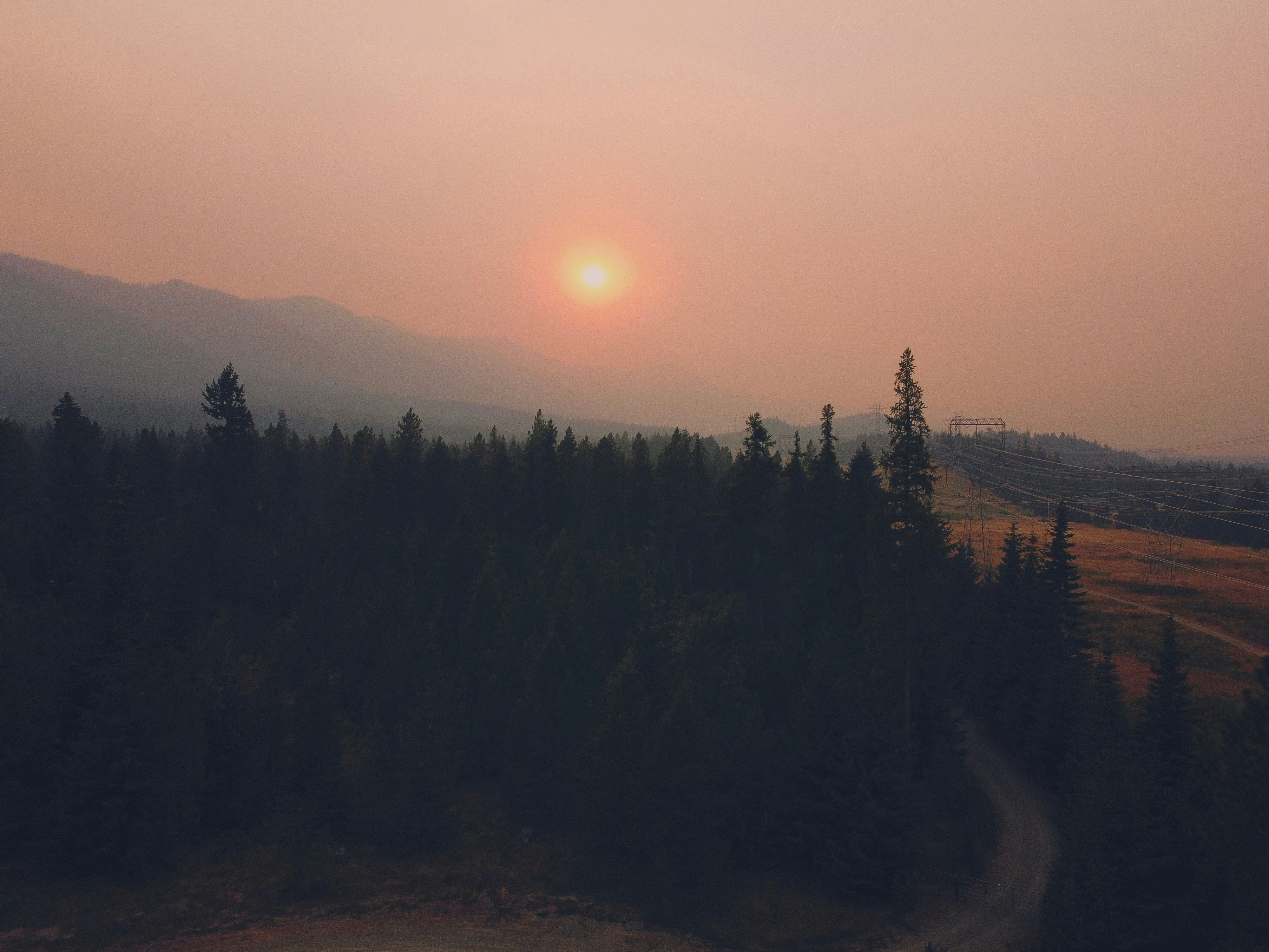 The sun setting over a smoke-filled sky in Washington