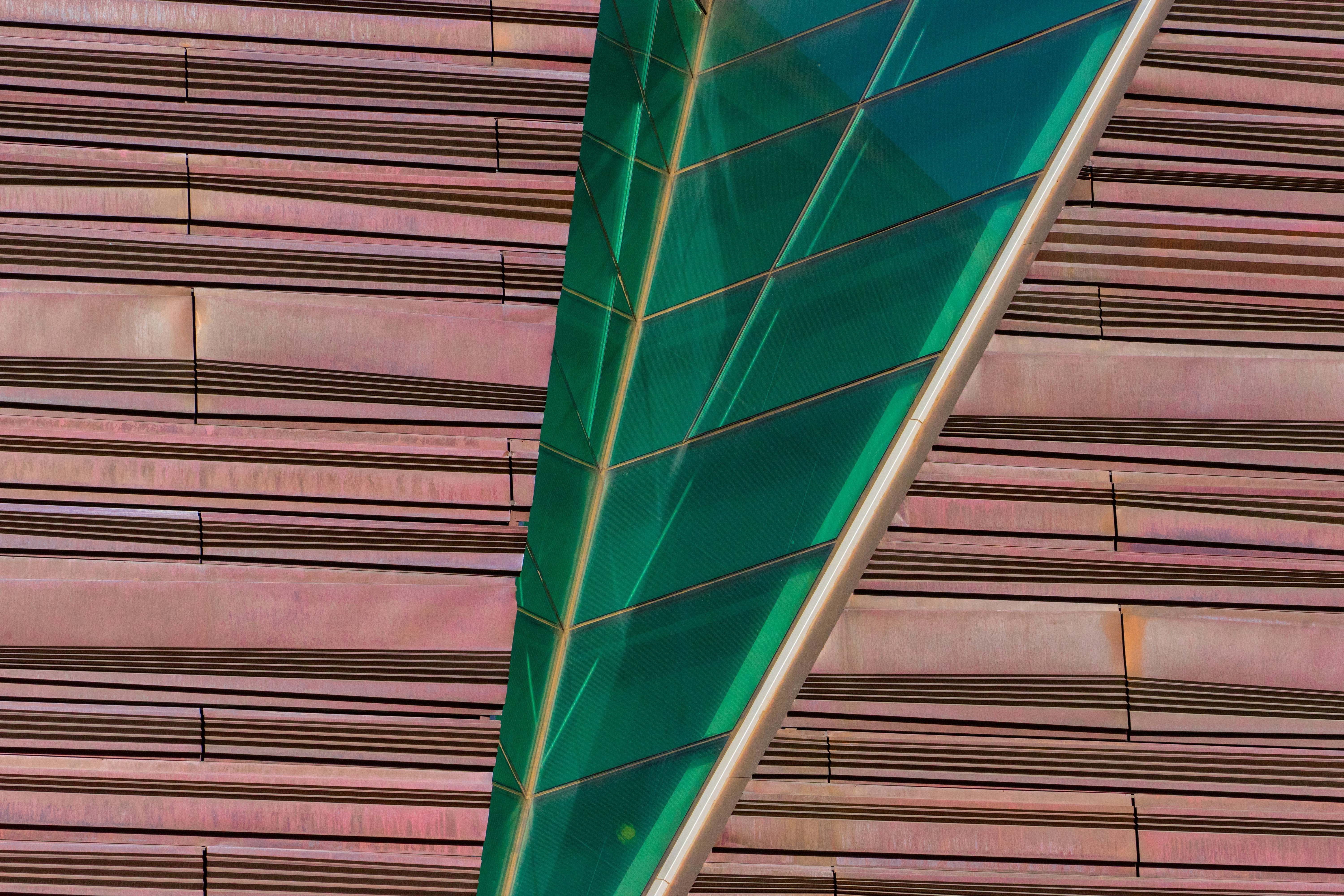 This beautiful building in Phoenix, Arizona is enveloped in Arizona copper, bent and designed to mimic the sedimentary layers of a canyon wall and crafted to withstand harsh Arizona summer weather over time. The unique properties of copper give this building a shield against heat and a unique beauty that actually changes over time as the copper interacts with water, heat, and the nature around it.