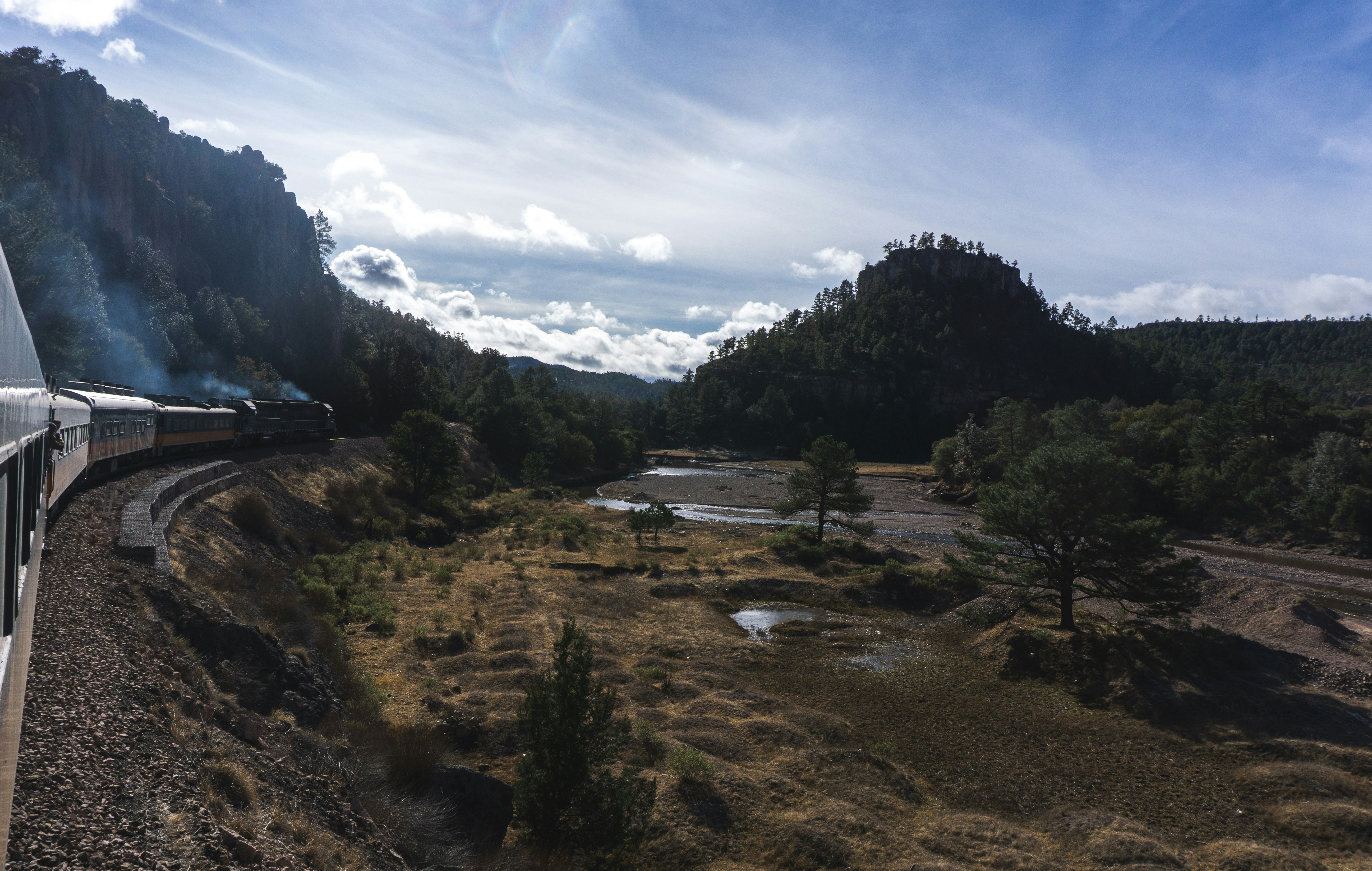Multiple OptionsThe Chihuahua al Pacífico Railway, known as El Chepe, is a rail line that runs from the Pacific coast at Los Mochis to the town of Creel, passing through the canyonlands. While the train ride is lauded as one of the most spectacular in the world, the really scenic parts of the journey are between El Fuerte and Creel, especially between El Fuerte and Bahuichivo where the train rapidly ascends many thousands of feet. For the best views, travel from west to east, e.g. Los Mochis to Creel, and try to sit on the right side of the train. The trip is 350 kilometres (220 mi) in length and takes approximately 9 hours, passing through towns and the towering cliffs of the canyons. Along the railway, many Tarahumarans lay out their food, crafts and other wares for sale. The train includes three classes, "first class", "executive class" and "tourist class", the latter being the most basic....