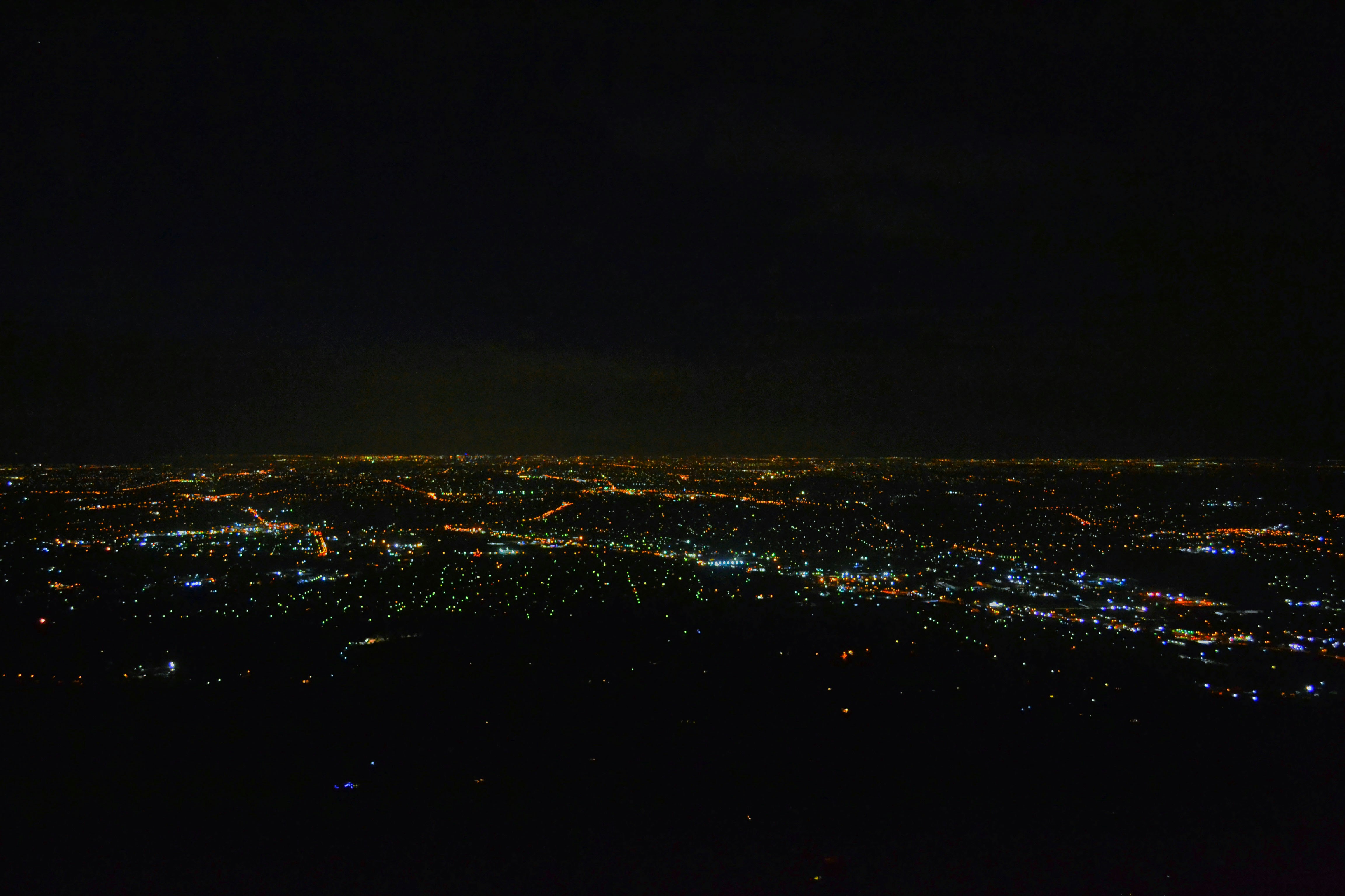 a view of a city at night from an airplane