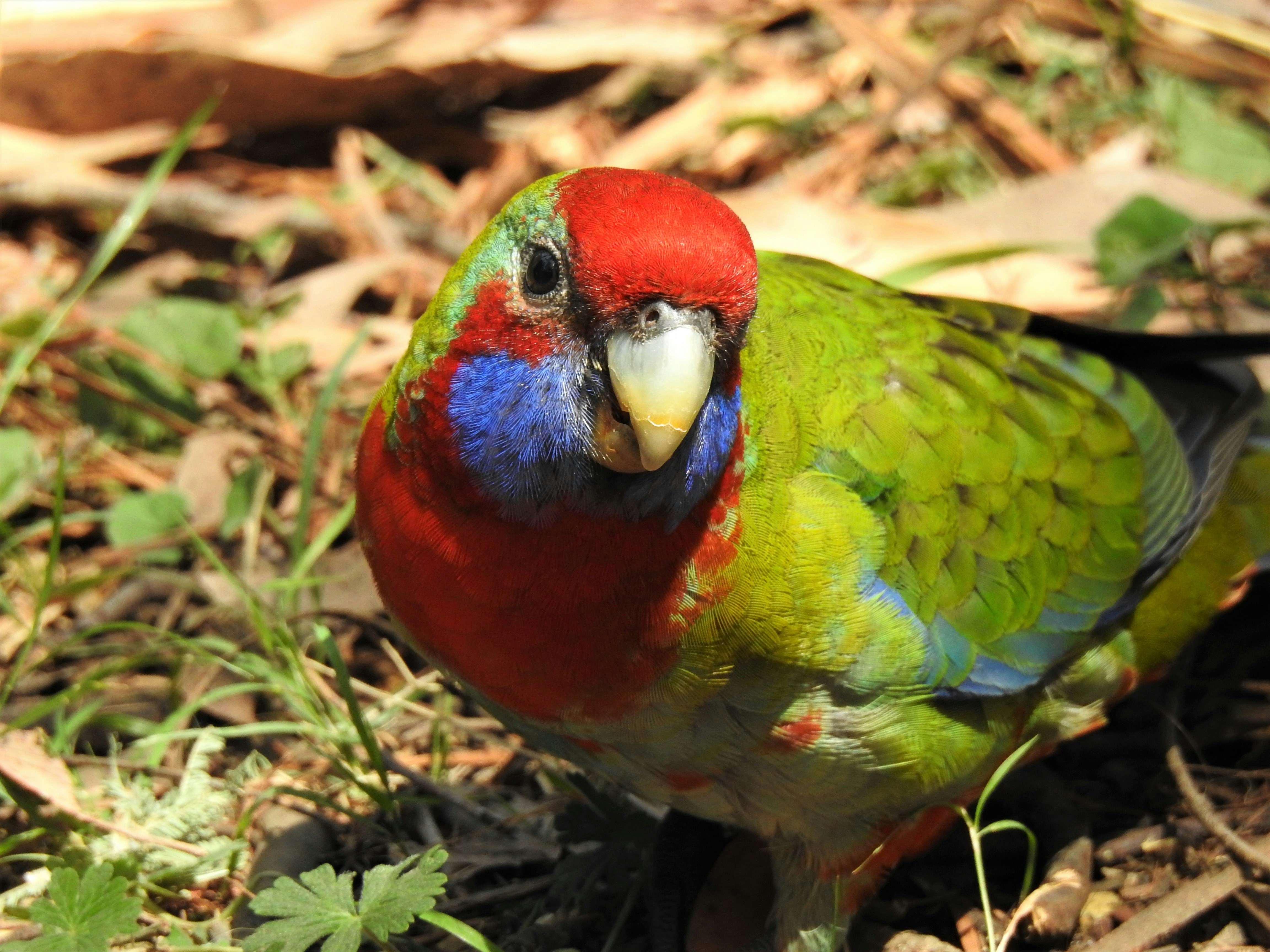 Searching for Seeds. A cheeky juvenile Eastern Rosella scratches for seeds in the leaf litter on the floor of Sherbrooke Forest. Sherbrooke National Park is on the outskirts of Melbourne, Australia.