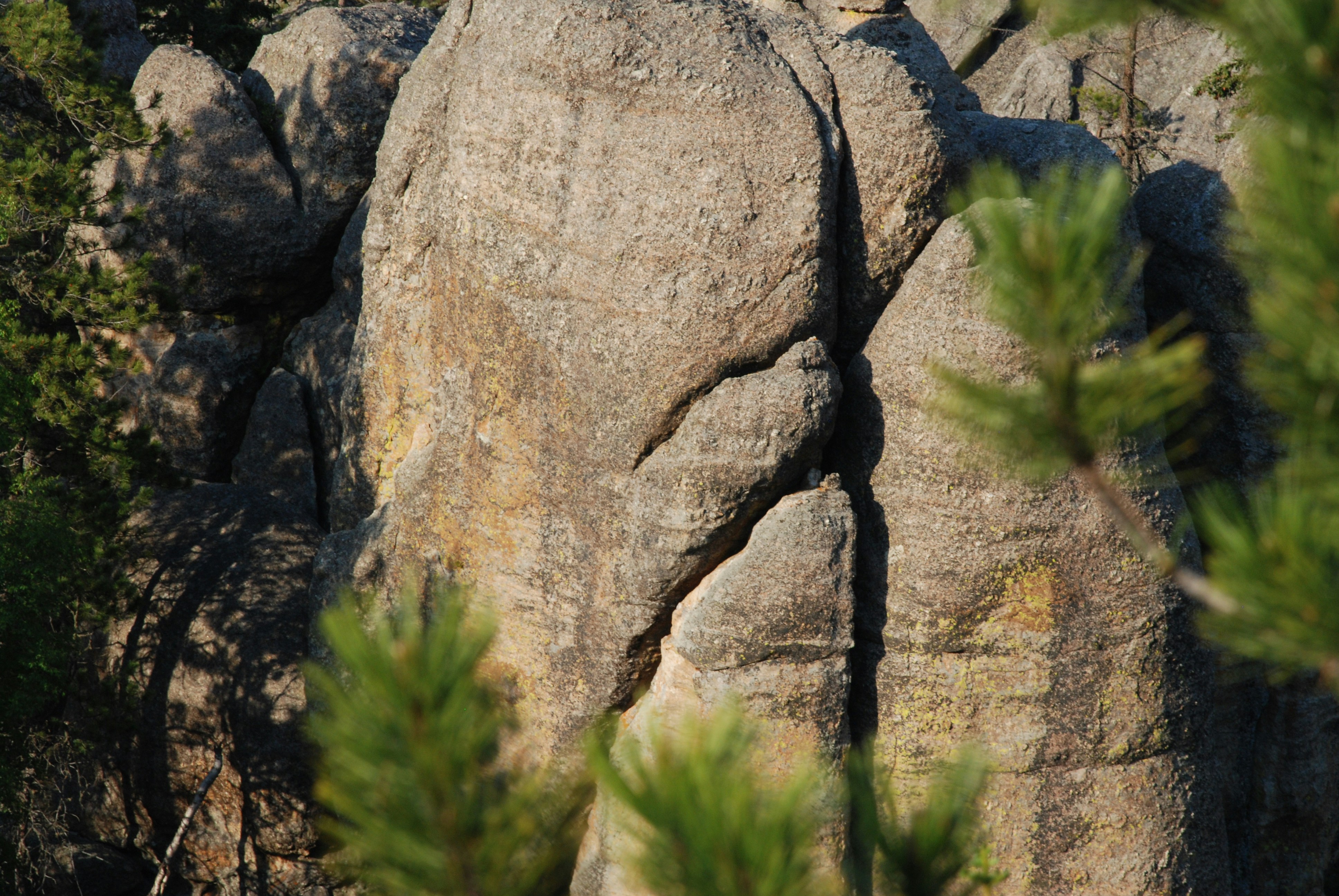 a stone carving sitting on top of a pile of rocks