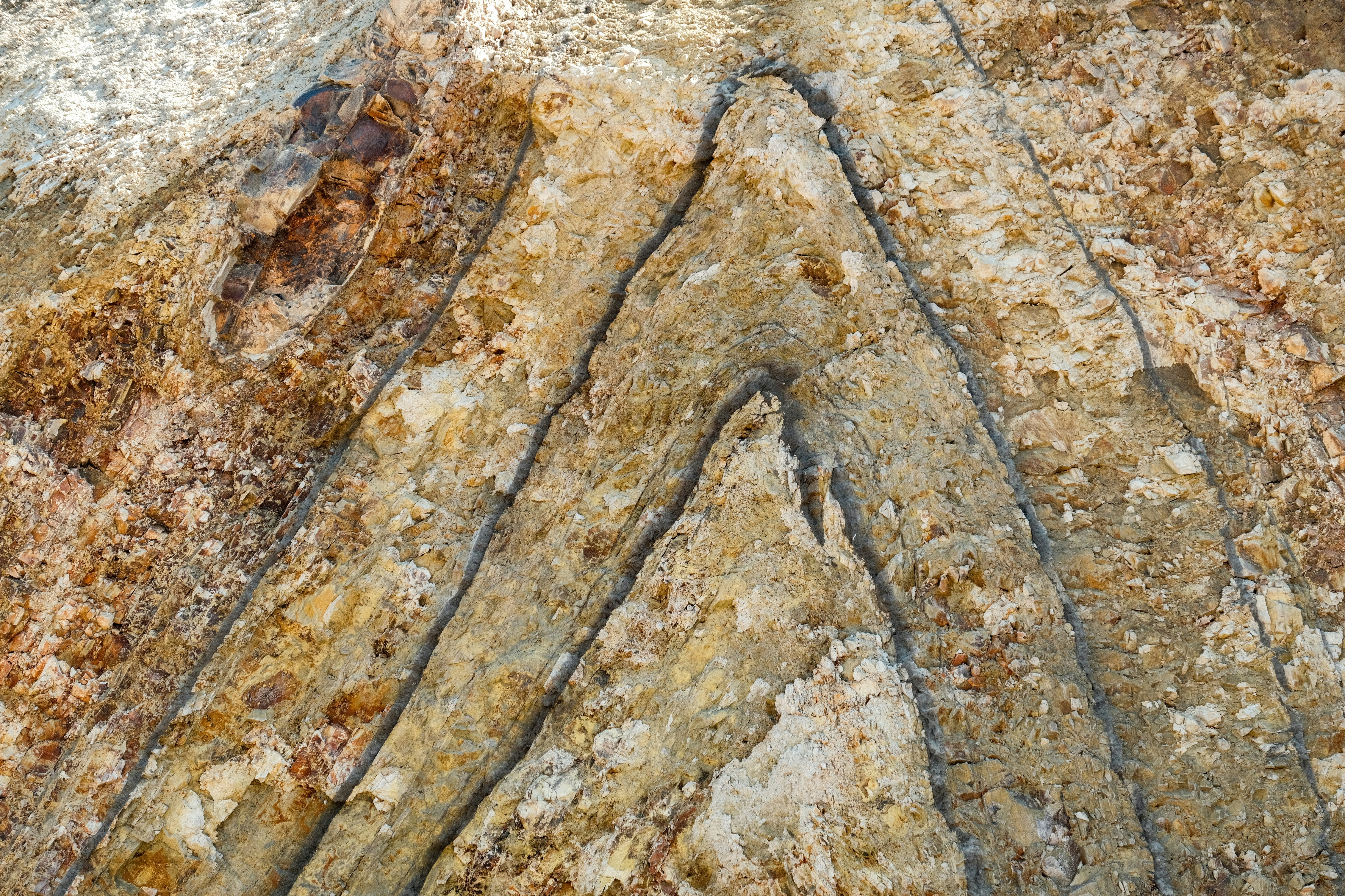 a rock formation with a blue sky in the background