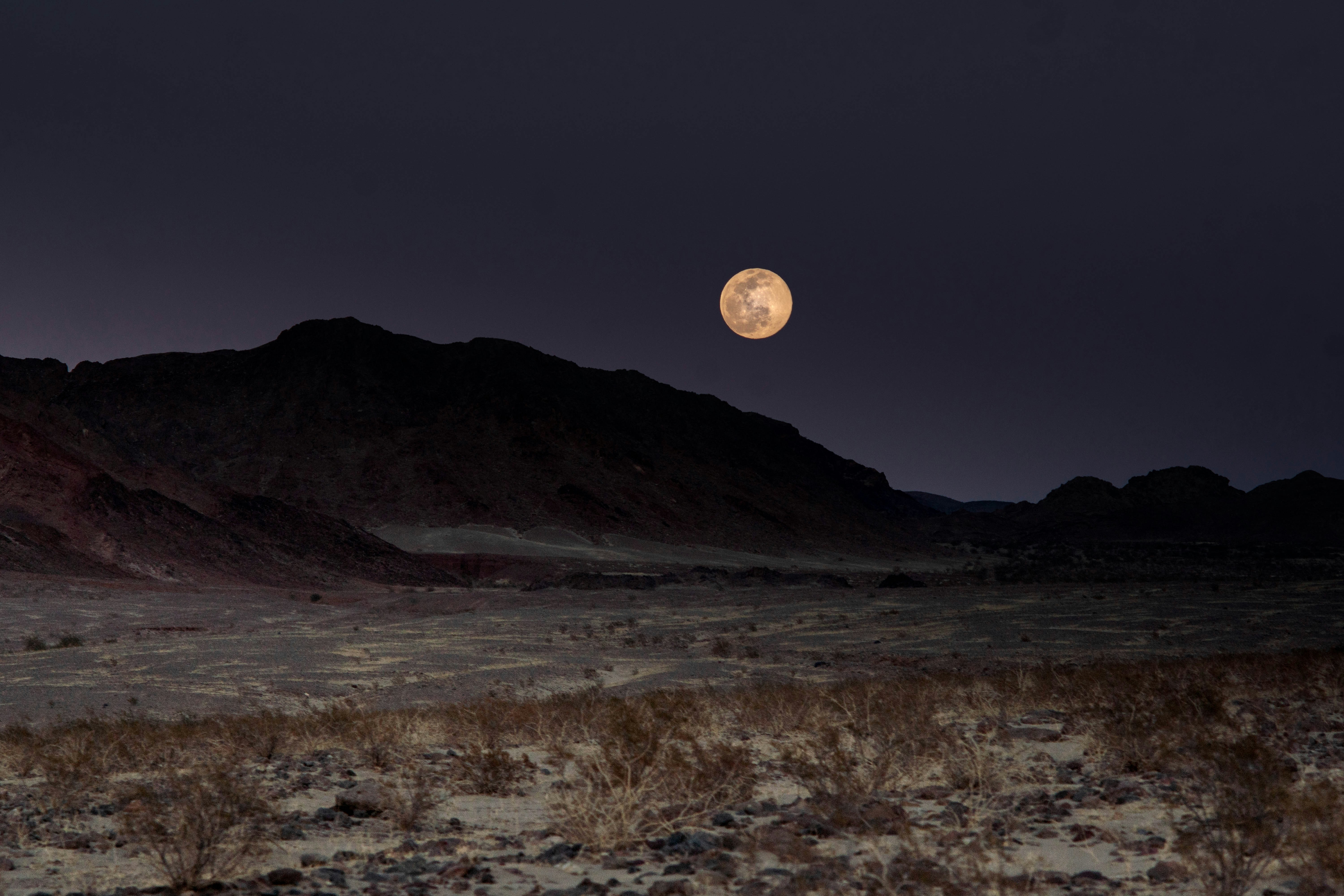 a full moon rises over a desert landscape