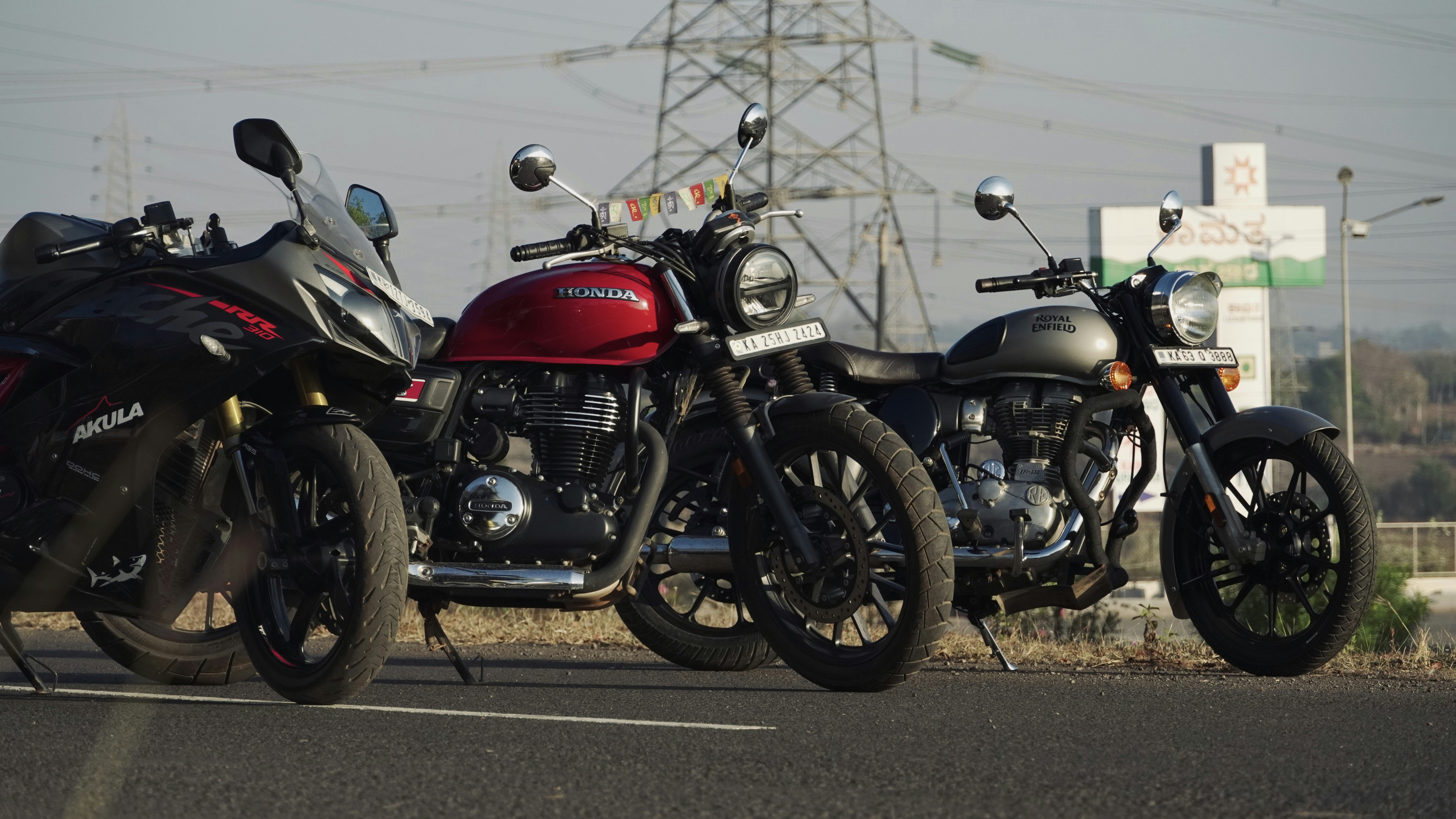 Just three souls flexing on there looks. TVS RR310_HONDA RS350_ROYALENFIELD CLASSIC 650