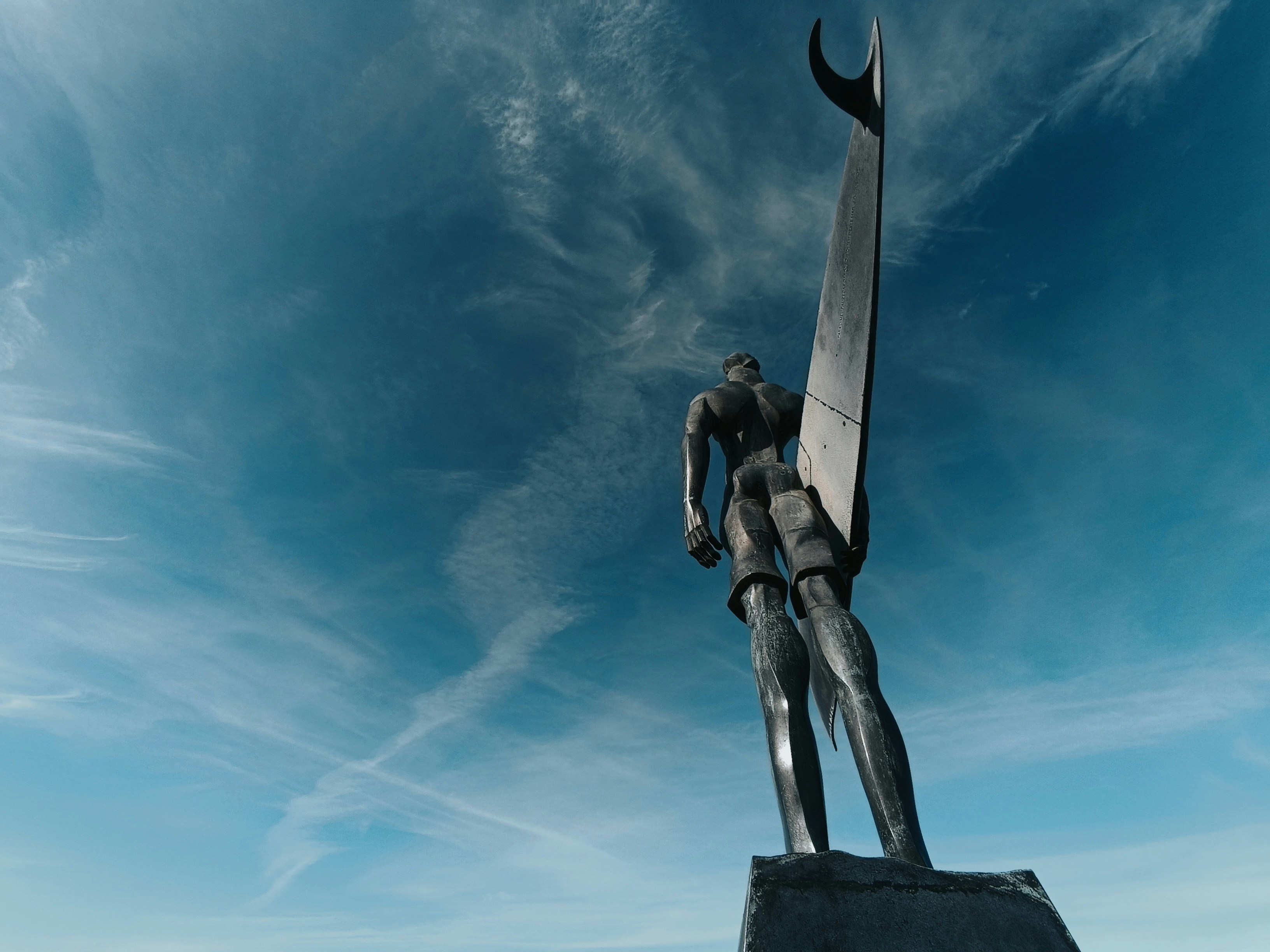 a statue of a man holding a giant knife