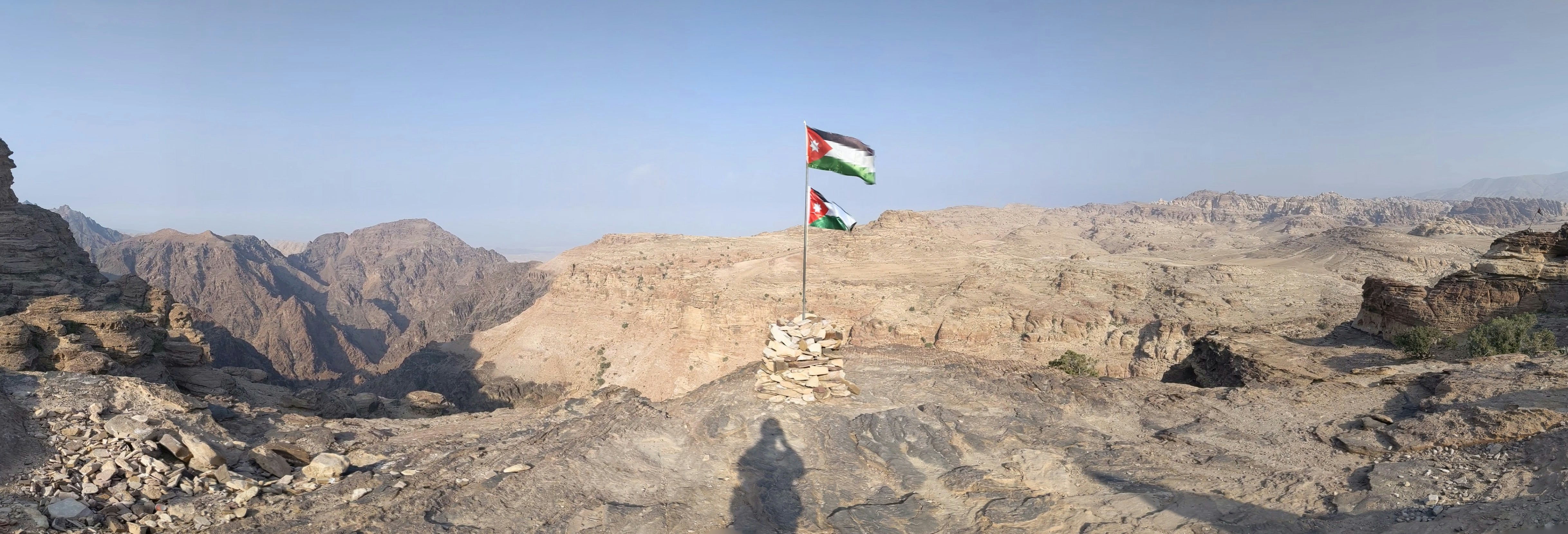 two flags flying on top of a rocky mountain