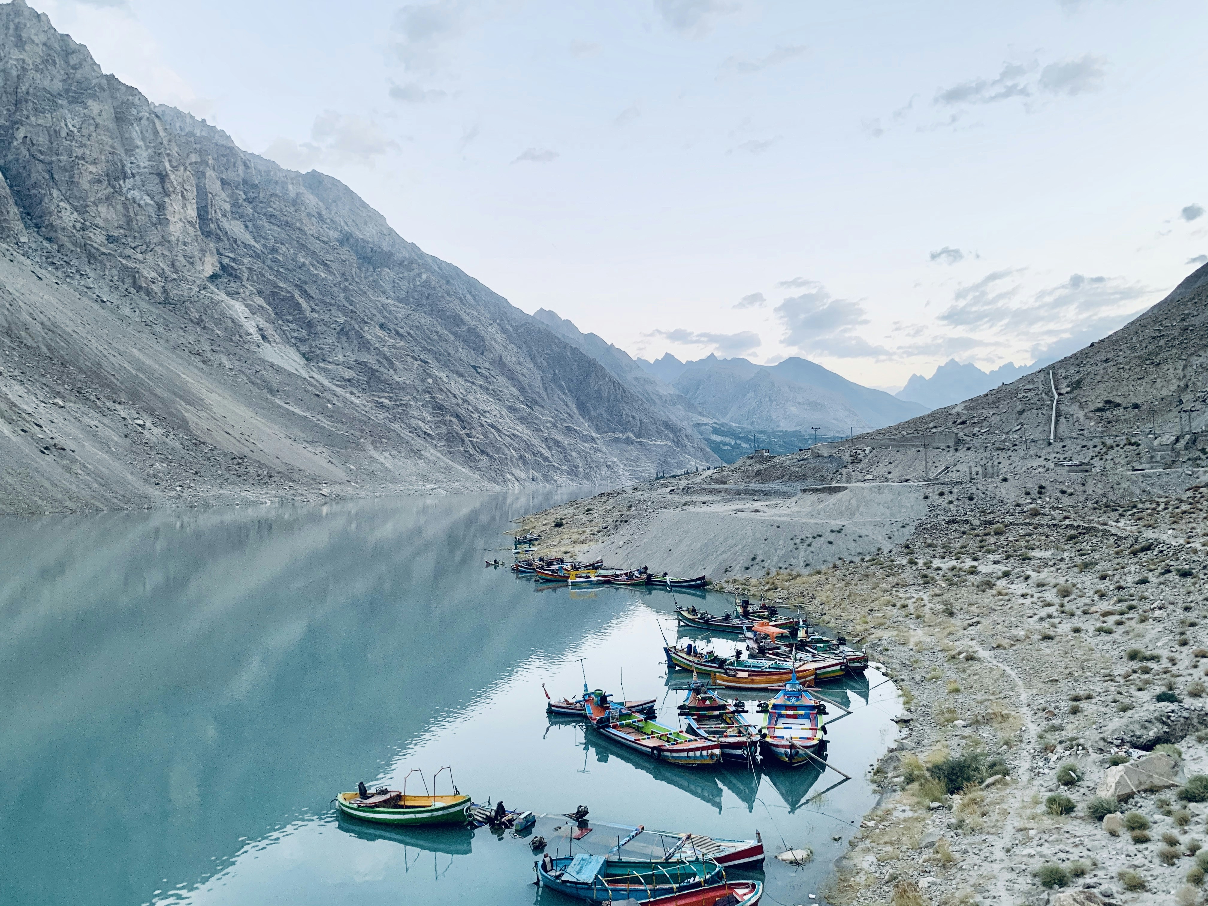 Attabad Lake also known as Gojal lake, is a lake in Gojal Valley, Hunza, Pakistan that was created in January 2010 by a landslide dam. The lake has since become a tourist attraction itself for its unique blue color and dramatic mountain backdrop