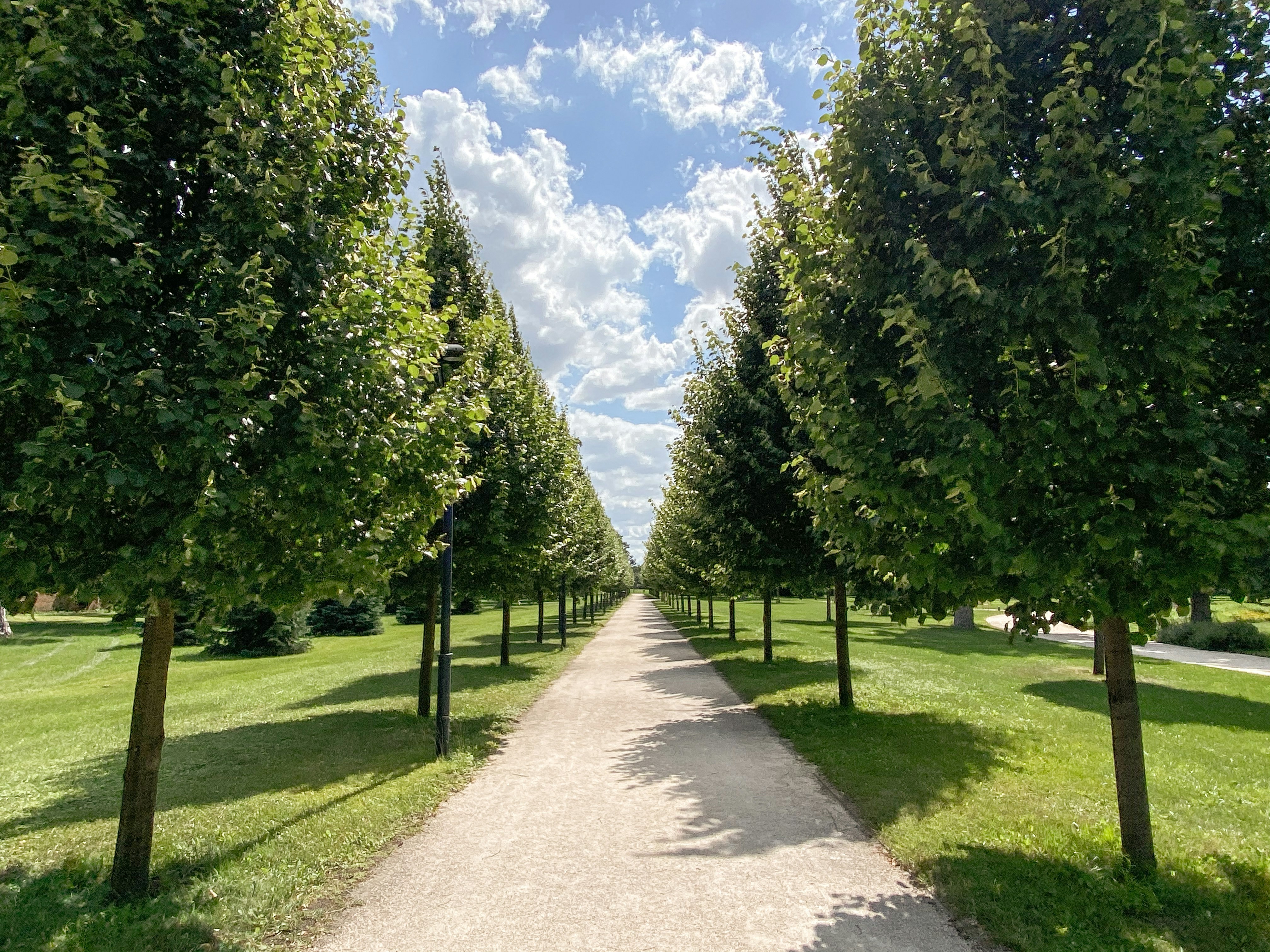 A tree-lined path in the garden at Godollo Palace.