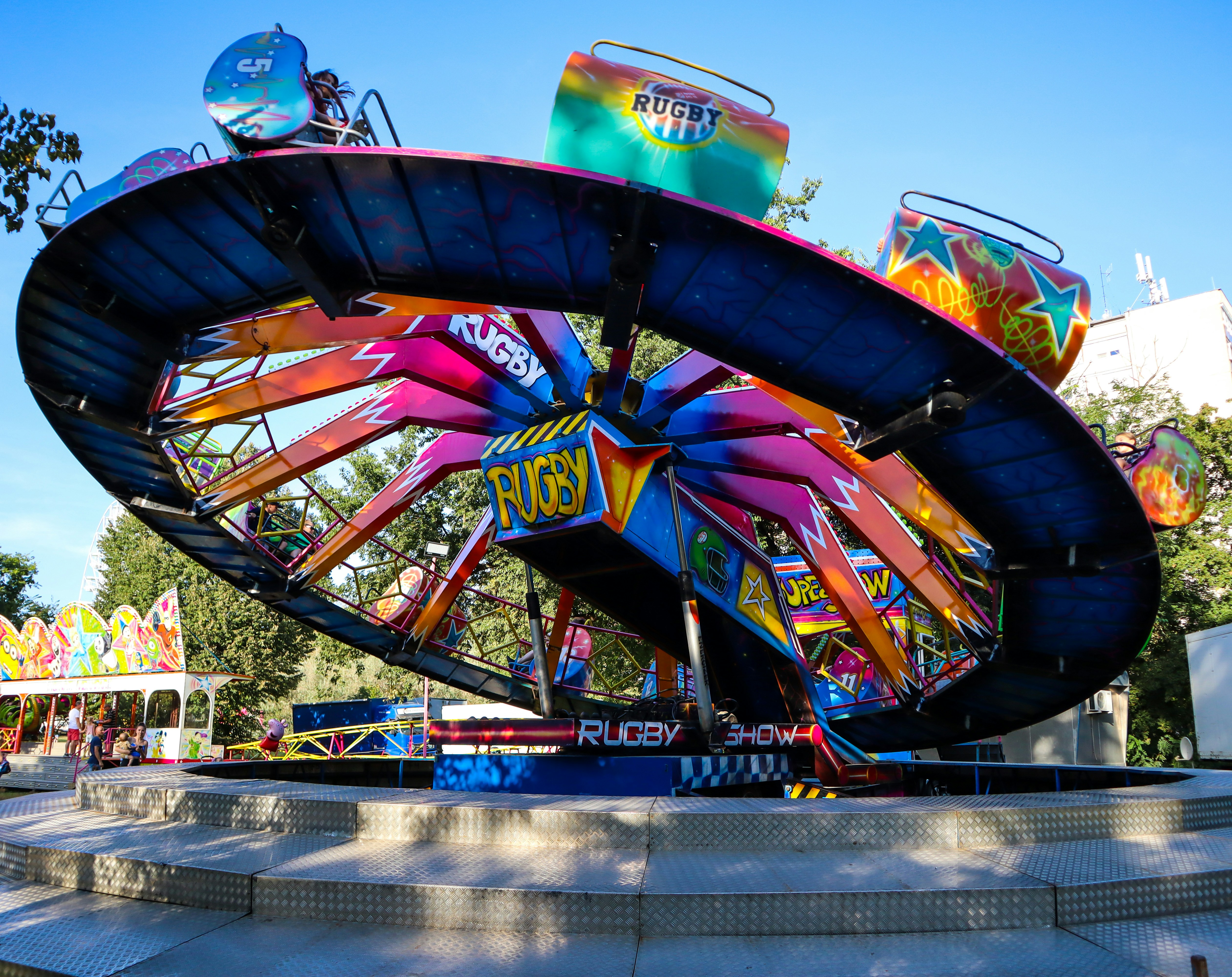 a carnival ride with a colorful design on it