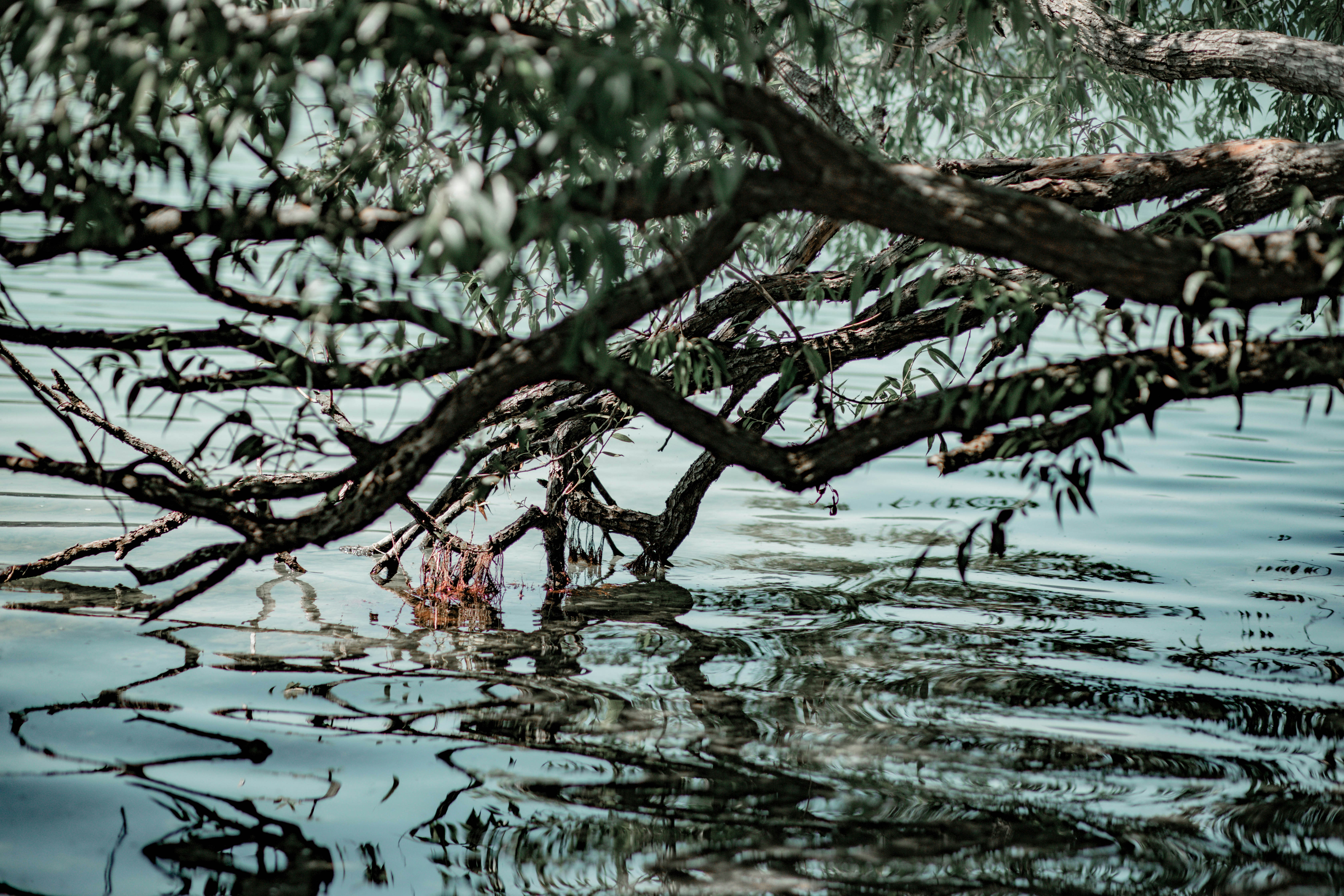red leaves on body of water