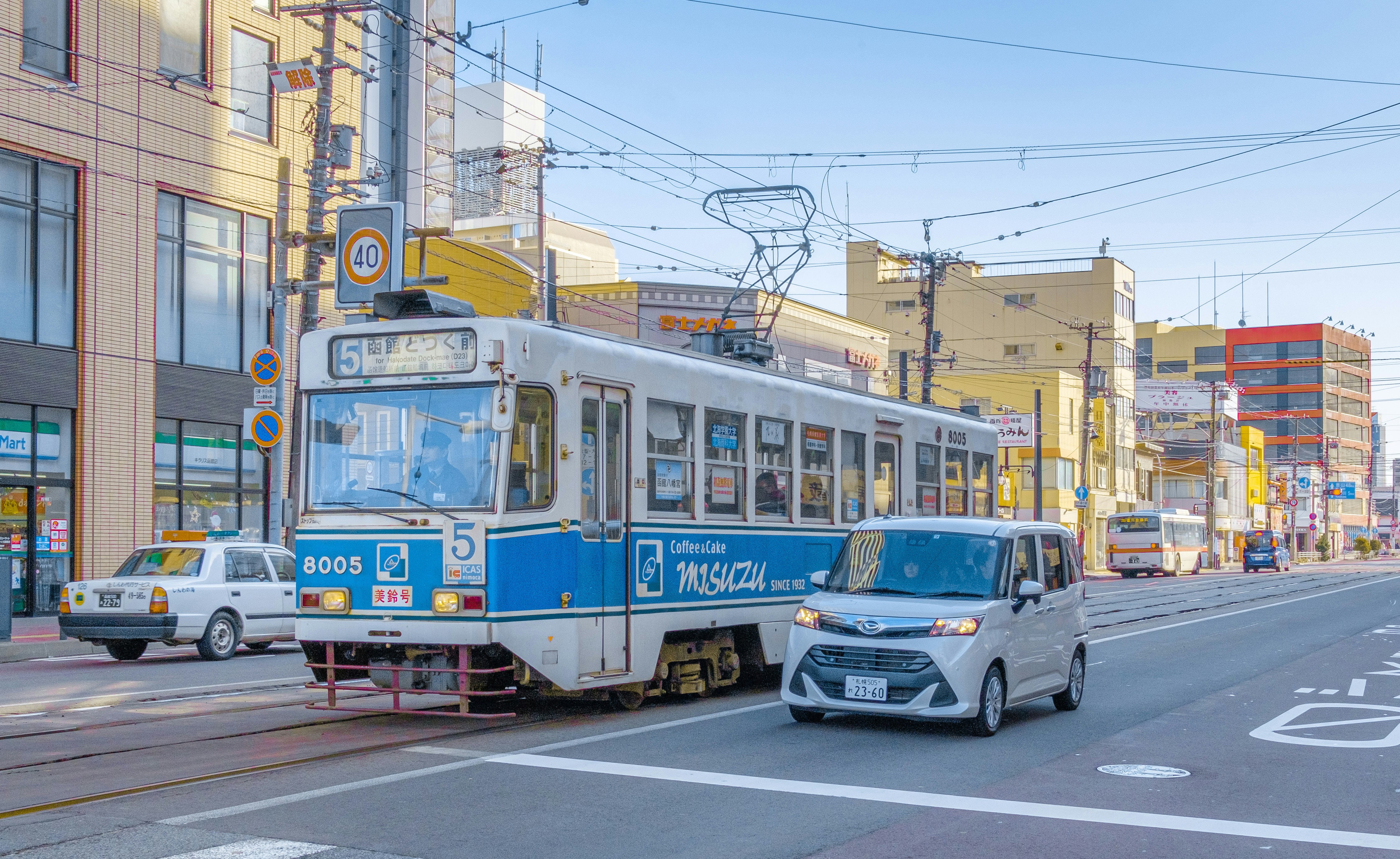 Hakodate is connected by two (practically one that branches to the SW of the city) streetcar lines and roughly two-hundred bus lines. Take a ticket or tap the IC card reader when boarding, then drop the ticket in the ticket box or tap again when getting off. Nationwide IC cards can be used in Hakodate, but using the local ICAS nimoca cuts ¥160 off bus-bus/bus-streetcar transfers, though it's probably not worth the hassle for travelers to create a card for this discount alone. Pay exact amounts in cash, and use the 両替 machine next to the ticket box to exchange coins or ¥1000 bills to smaller denominations if needed. Larger bills and the new (silver core with gold ring) ¥500 coins can only be exchanged with the driver. Day passes costs ¥600 for the streetcar, ¥800 for the bus, or ¥1,000 for both. Most passes can only be purchased from the DohNa!!! website, but streetcar-only paper passes can still be purchased from the driver when delighting.