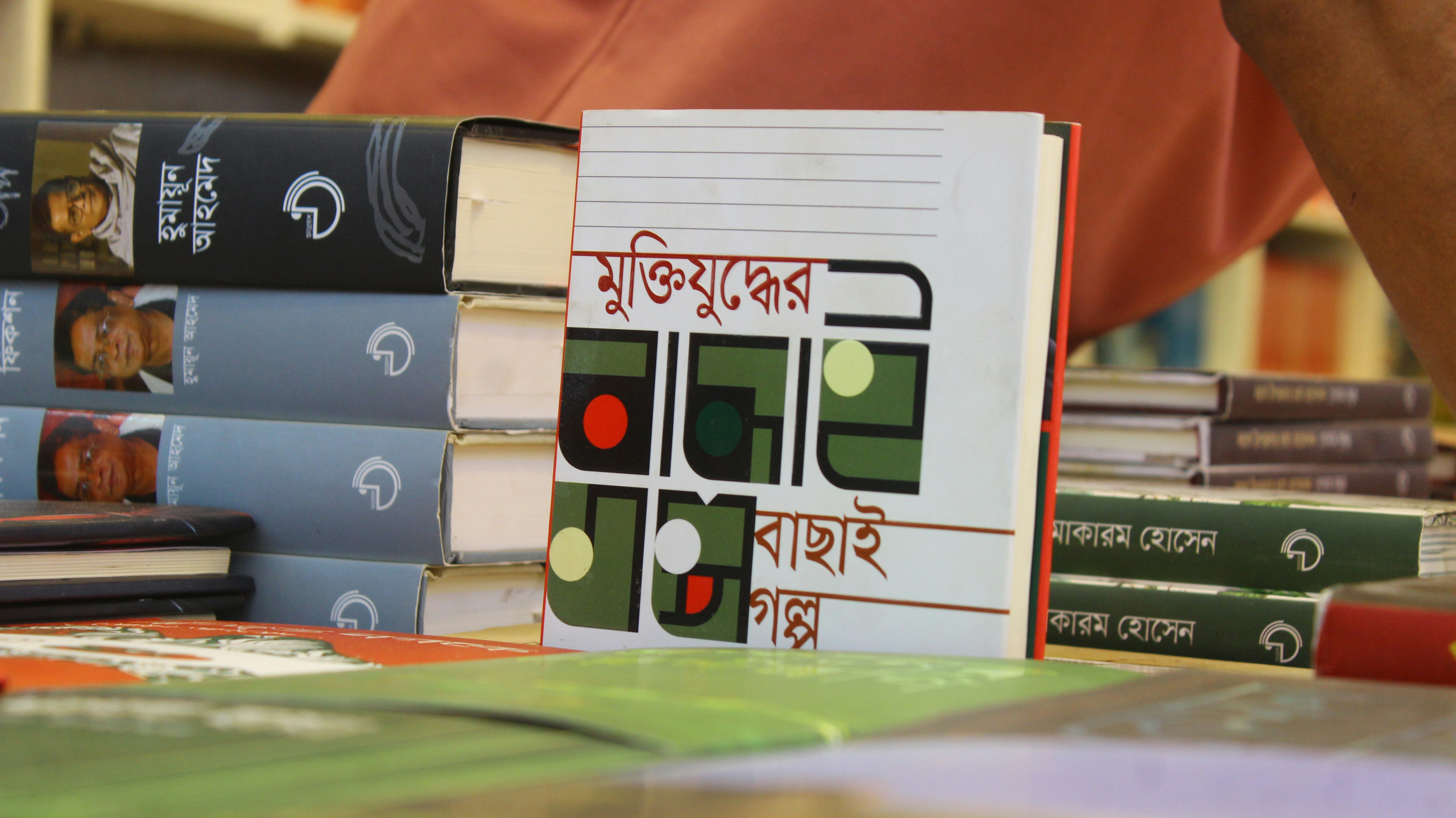 Stack of books with a unique cover design
