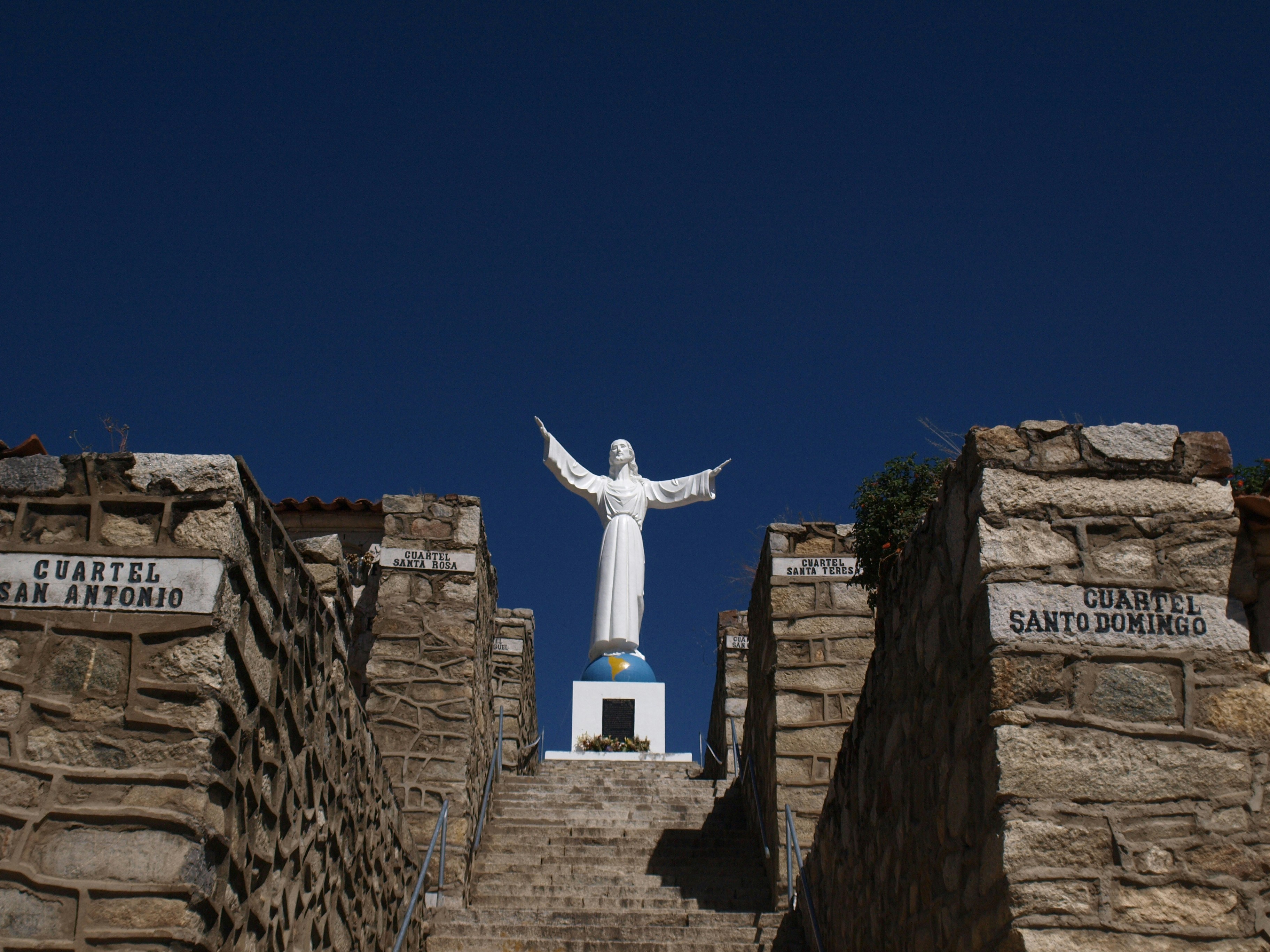 a statue of jesus on top of a stairway