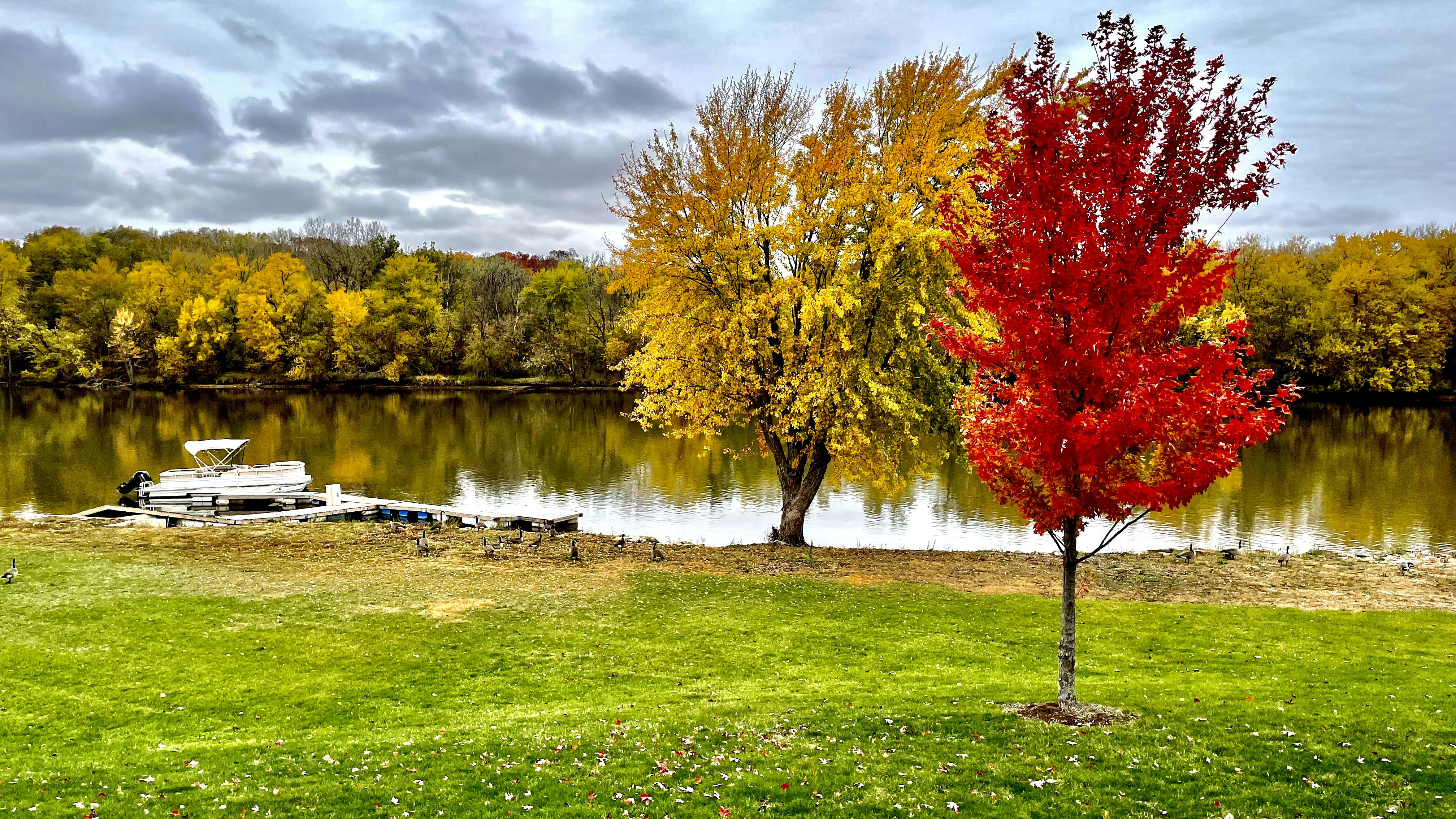 red and yellow leaf trees near lake during daytime