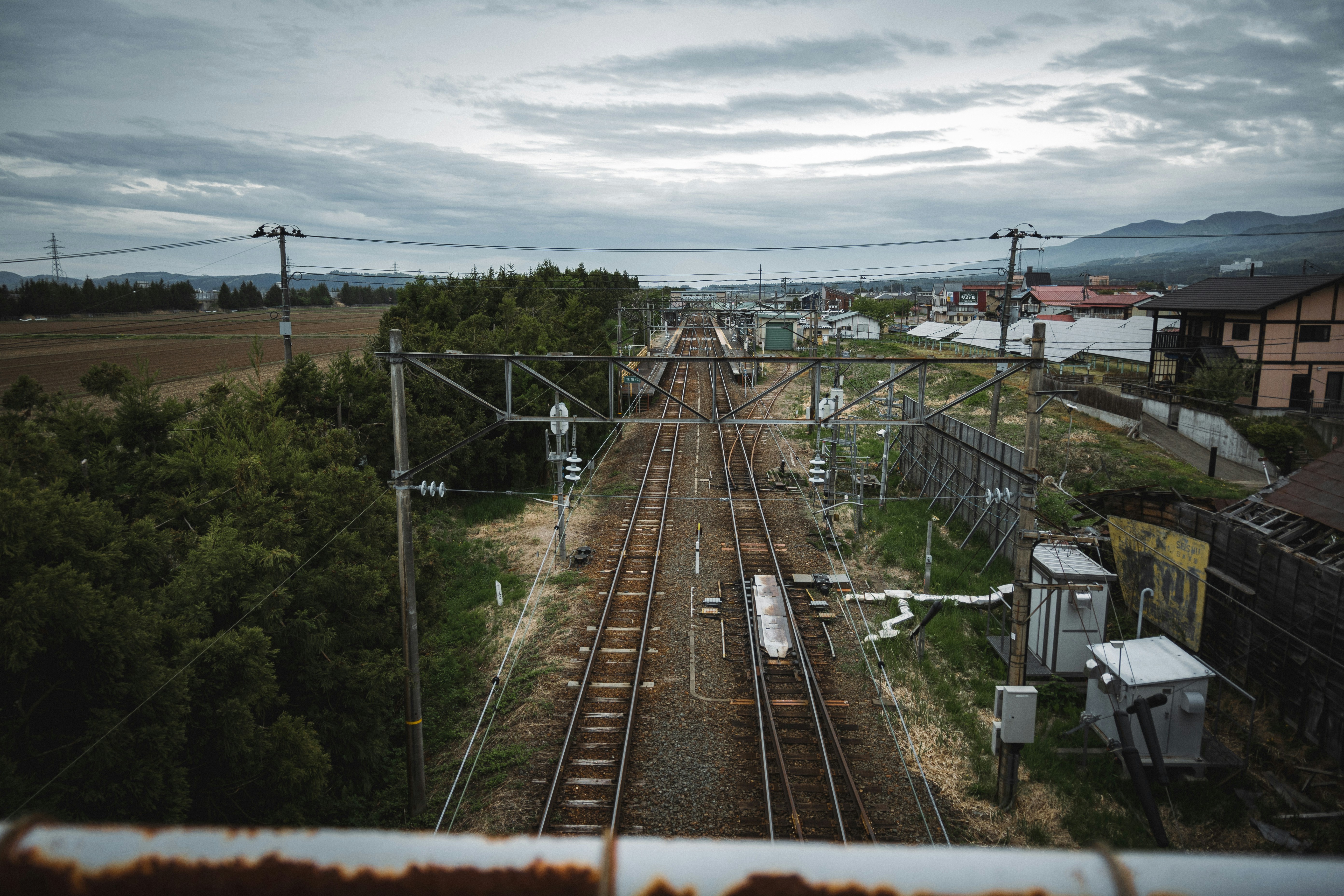 a train track running through a rural countryside