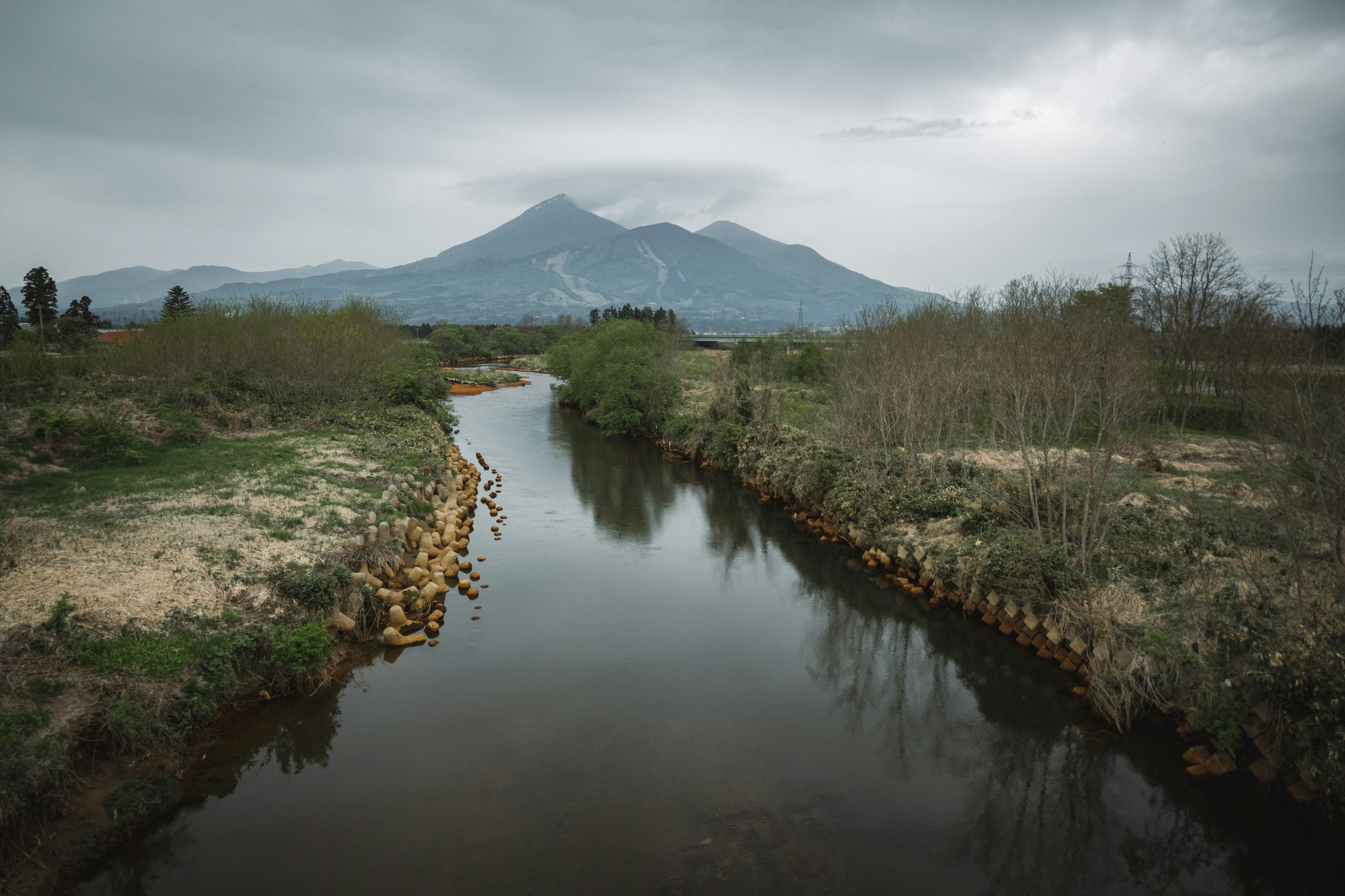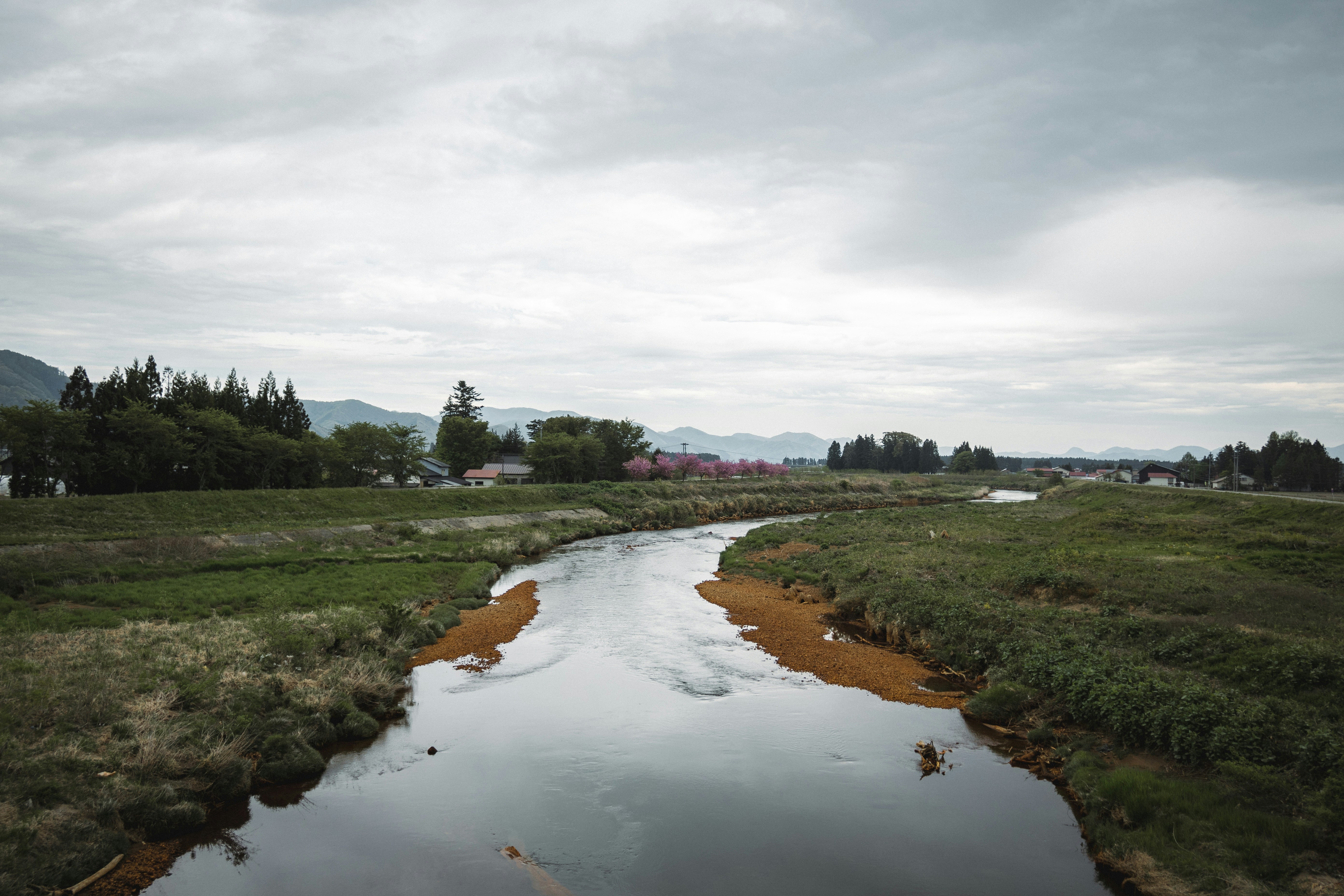 a river running through a lush green field