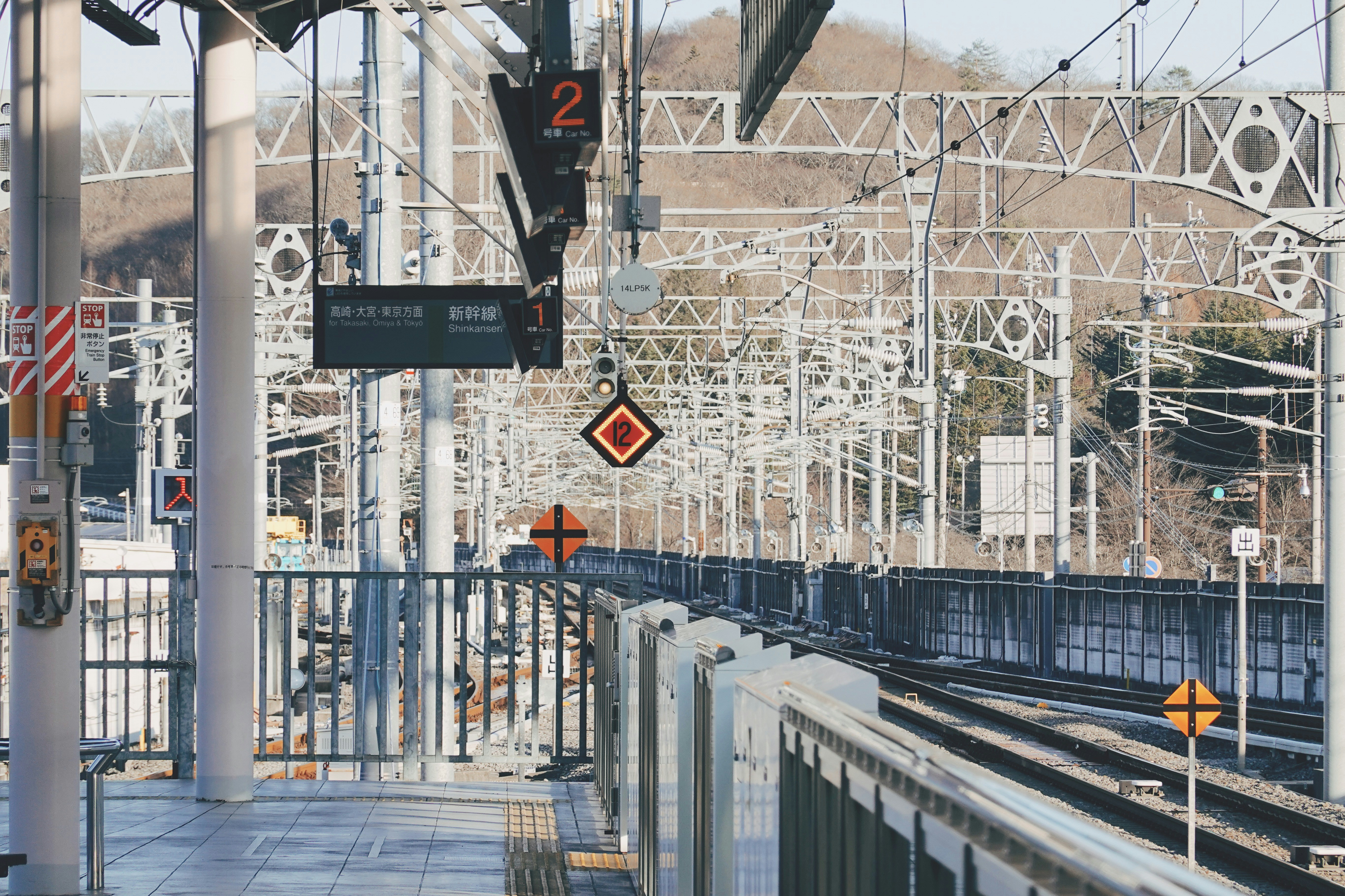 a train station with a train on the tracks