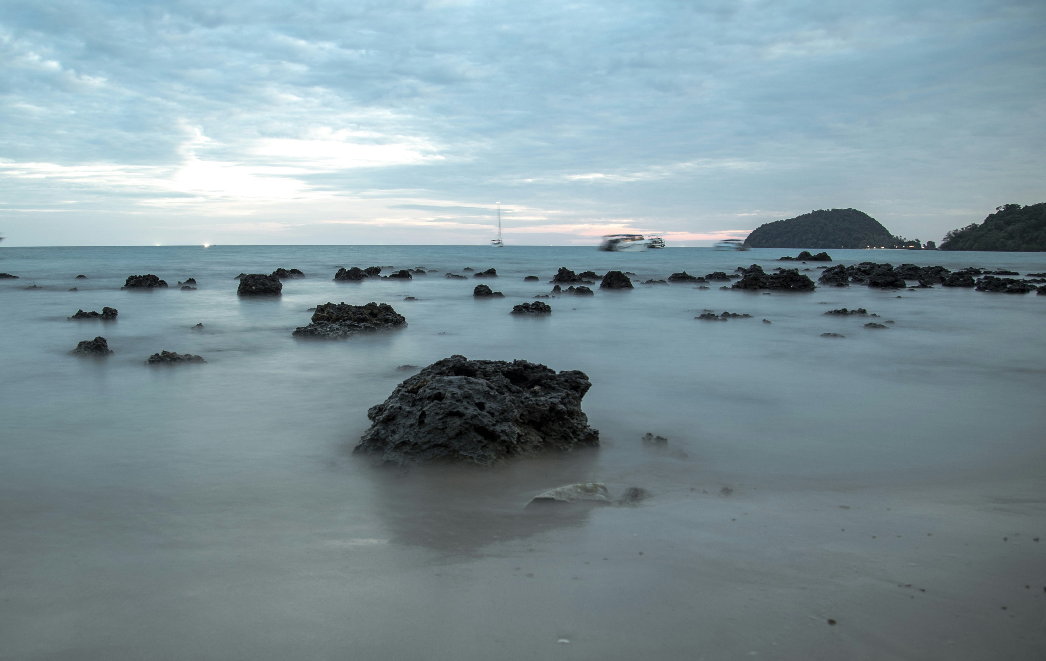 black rock formation on sea shore during daytime