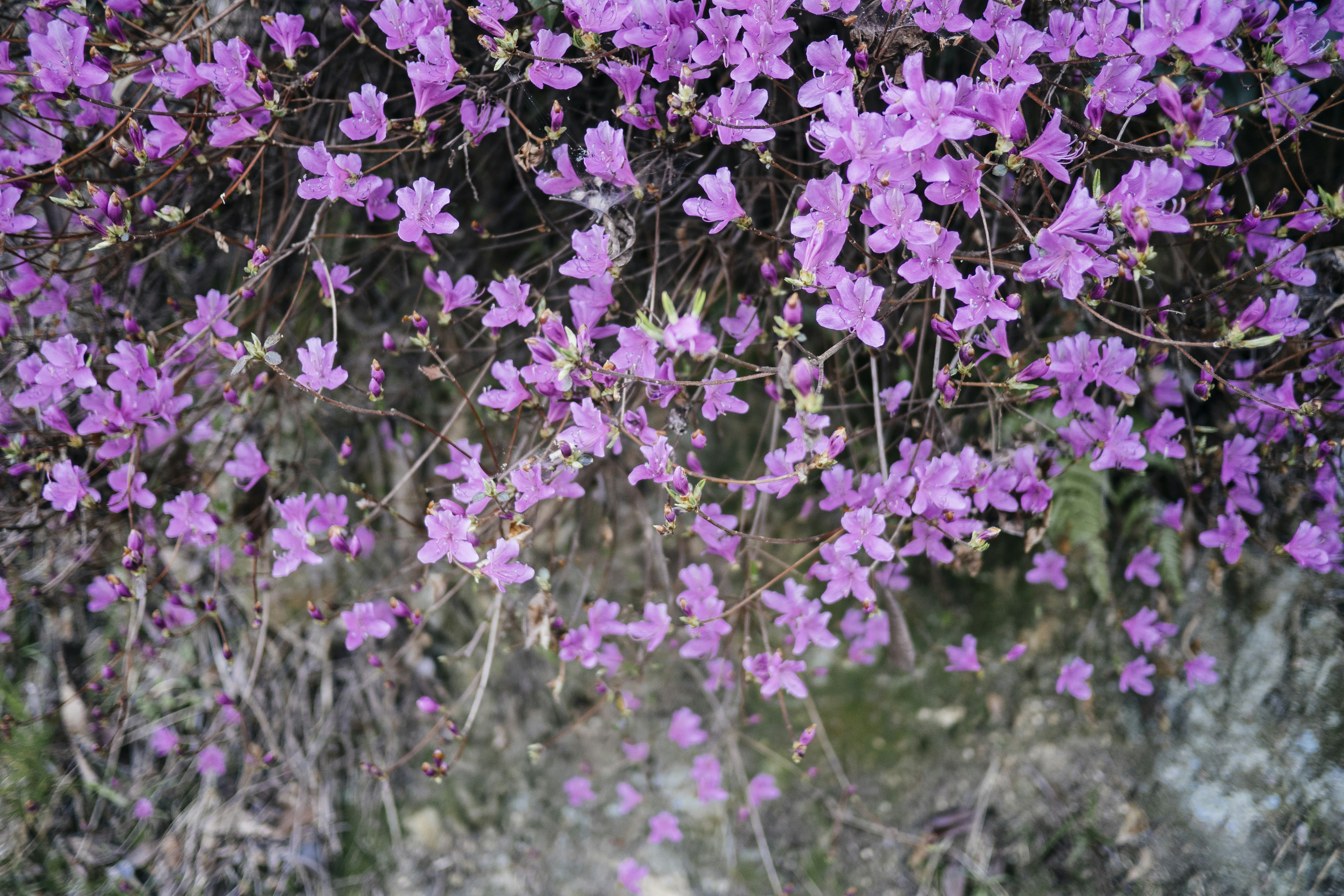 purple flowers with green leaves