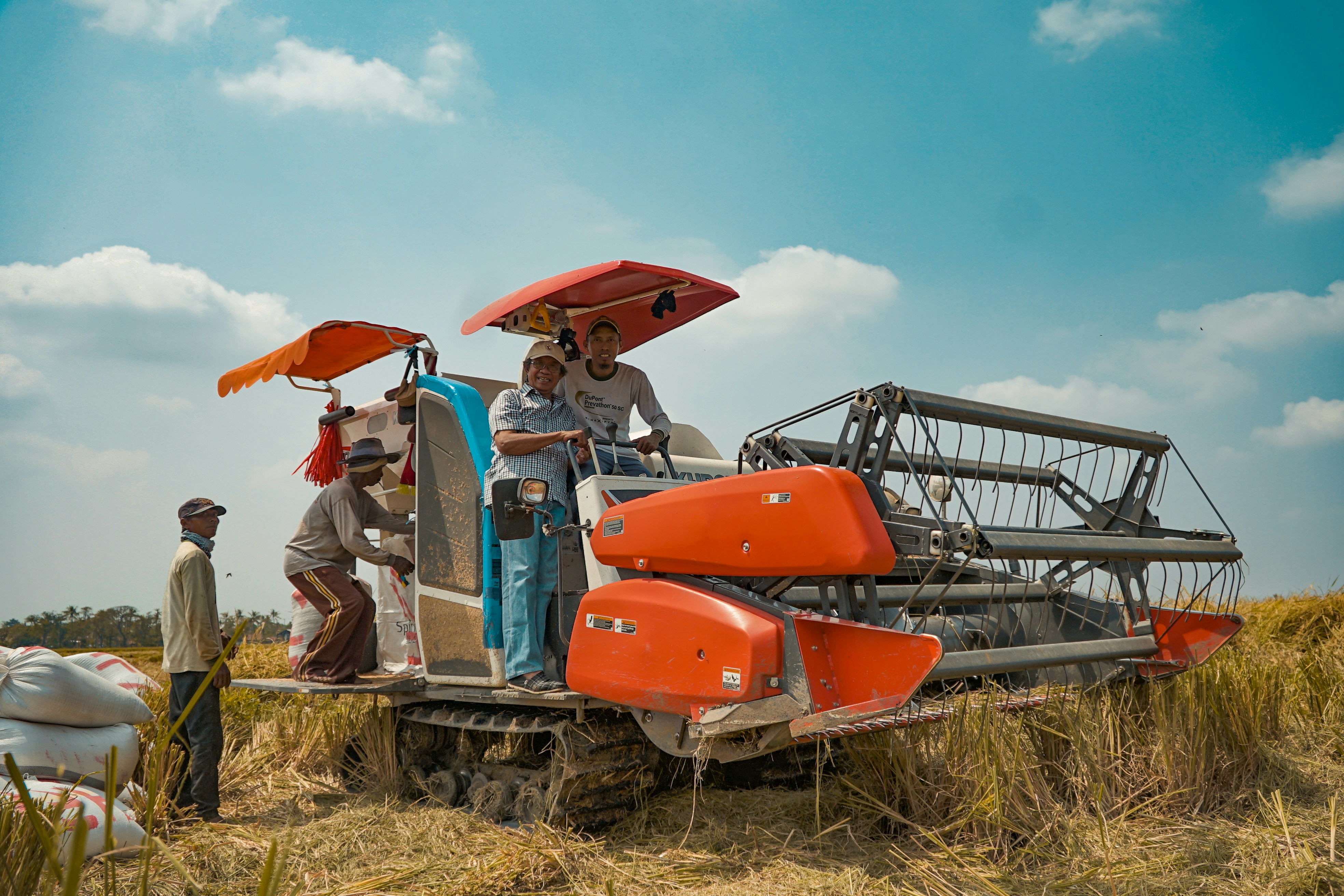 Bergaya di atas mesin panen padi di Subang