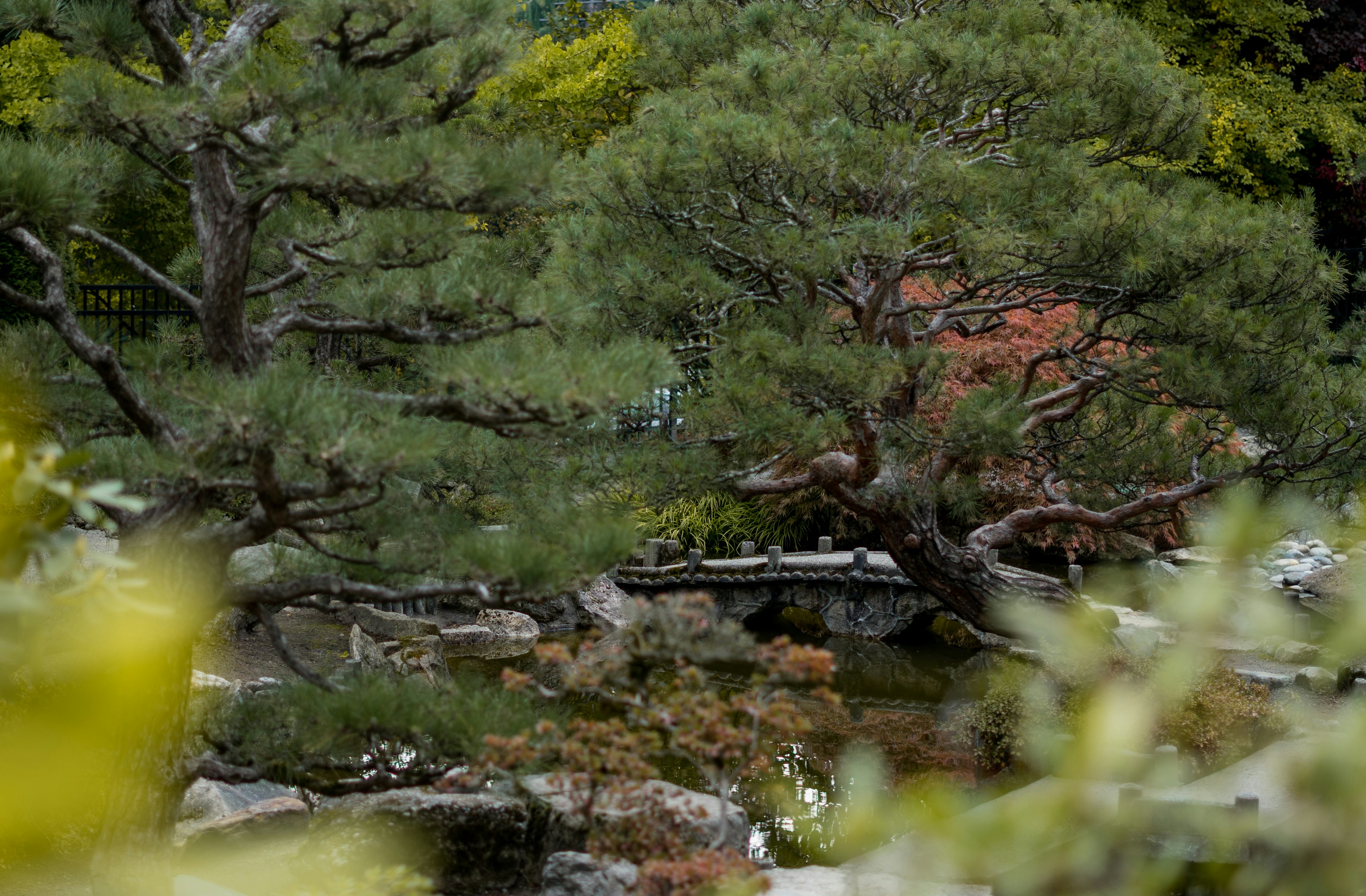 A pagoda in the middle of a park surrounded by trees