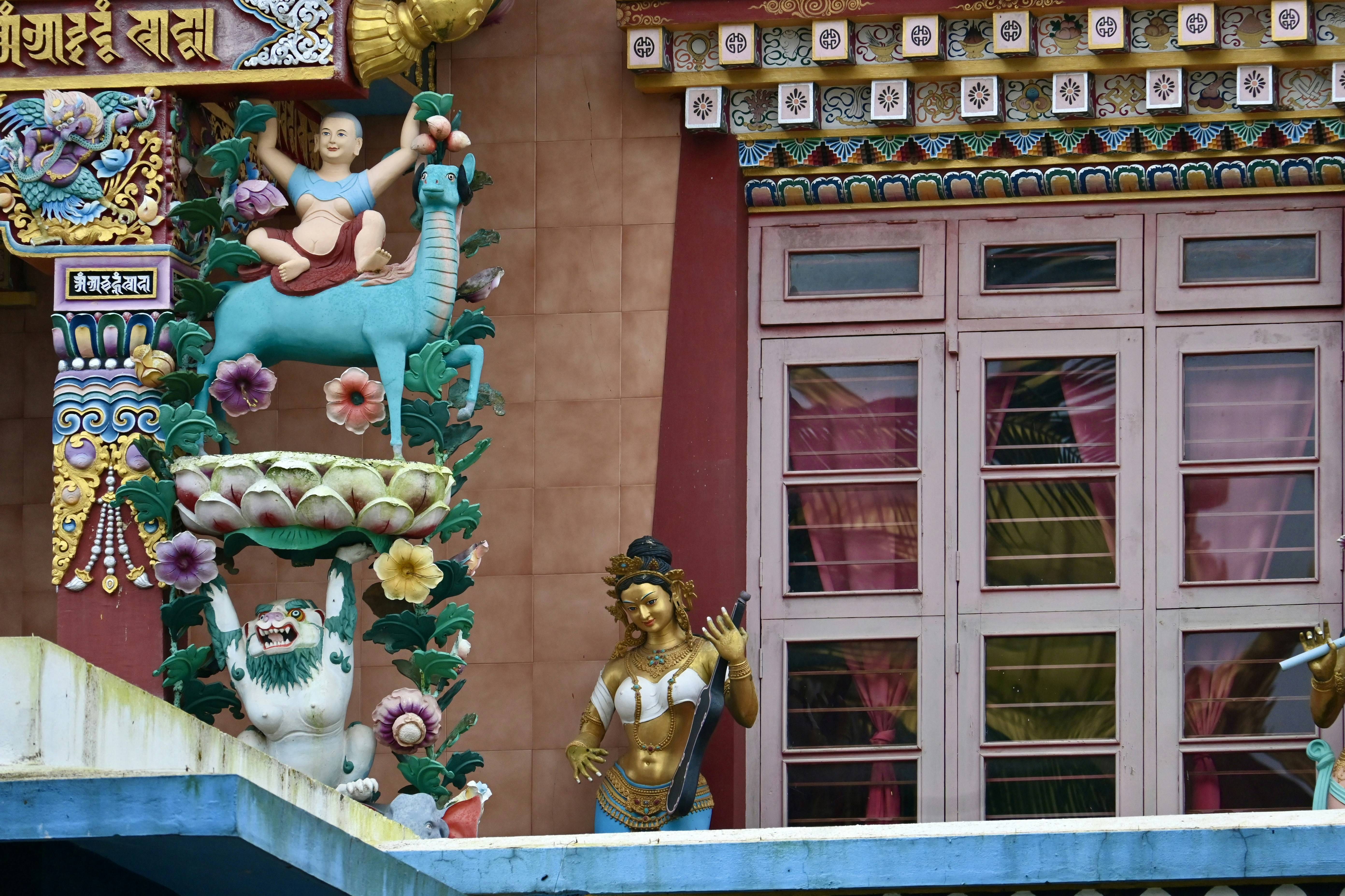 Beautiful sculptures. Shot from Namdroling Monastery Golden Temple.
