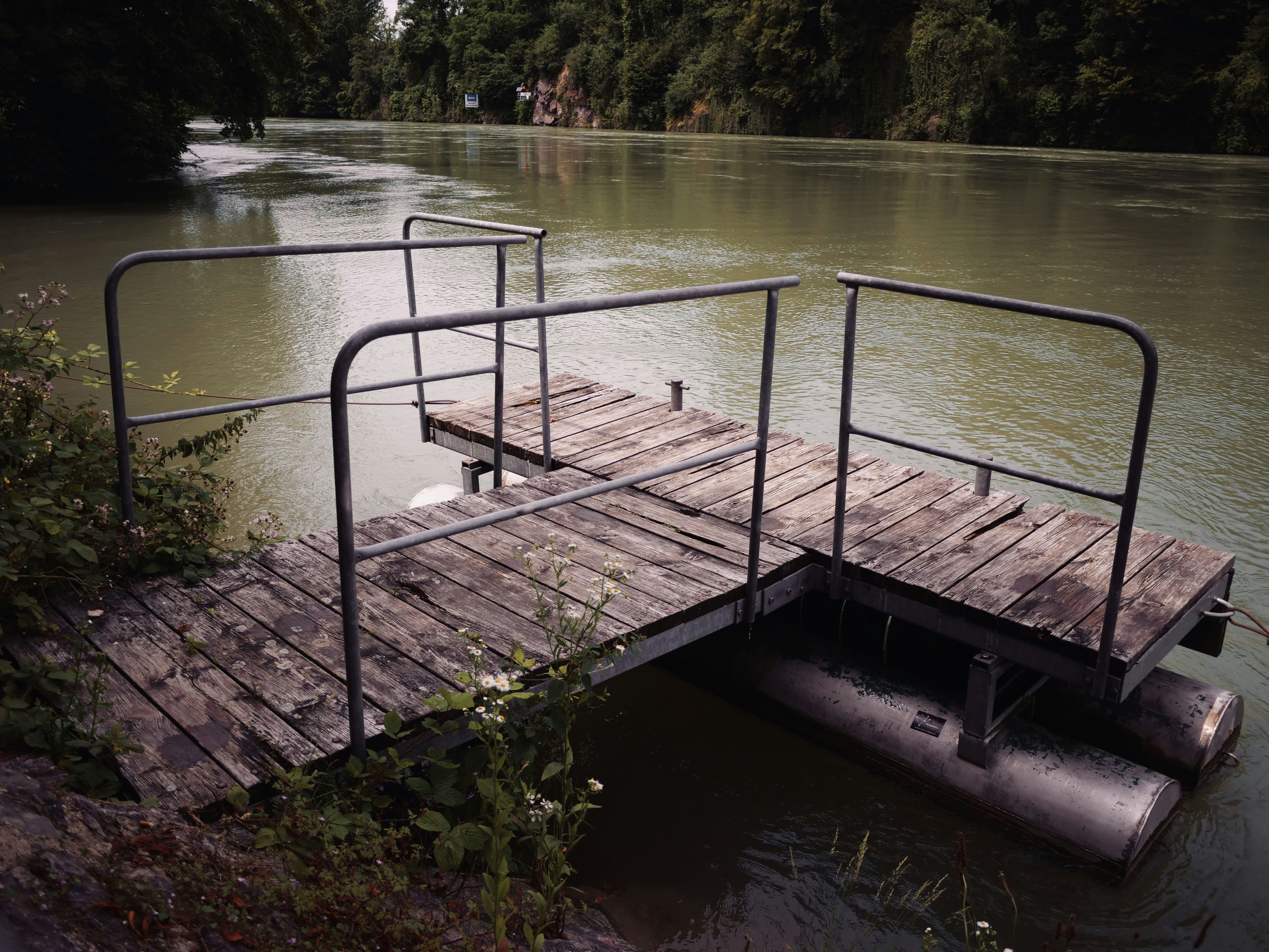 a wooden dock sitting on top of a river