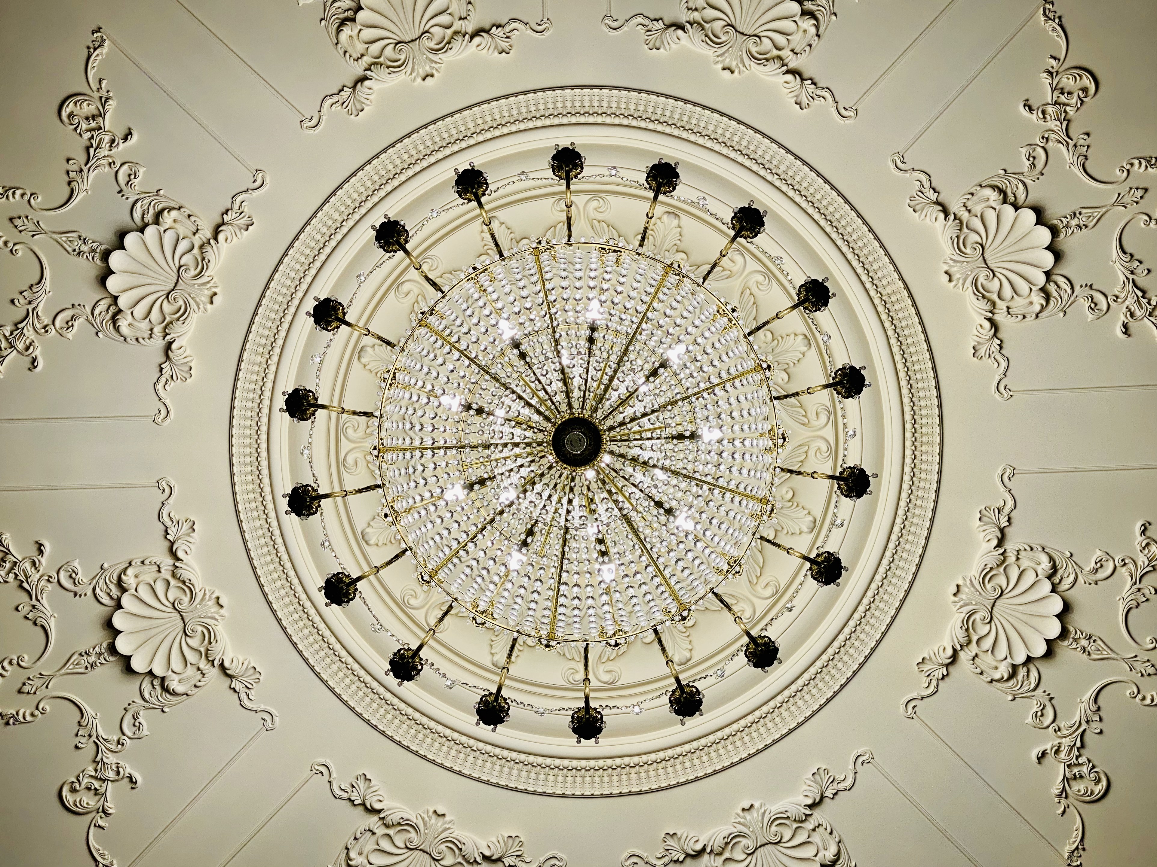 a chandelier hanging from the ceiling of a building