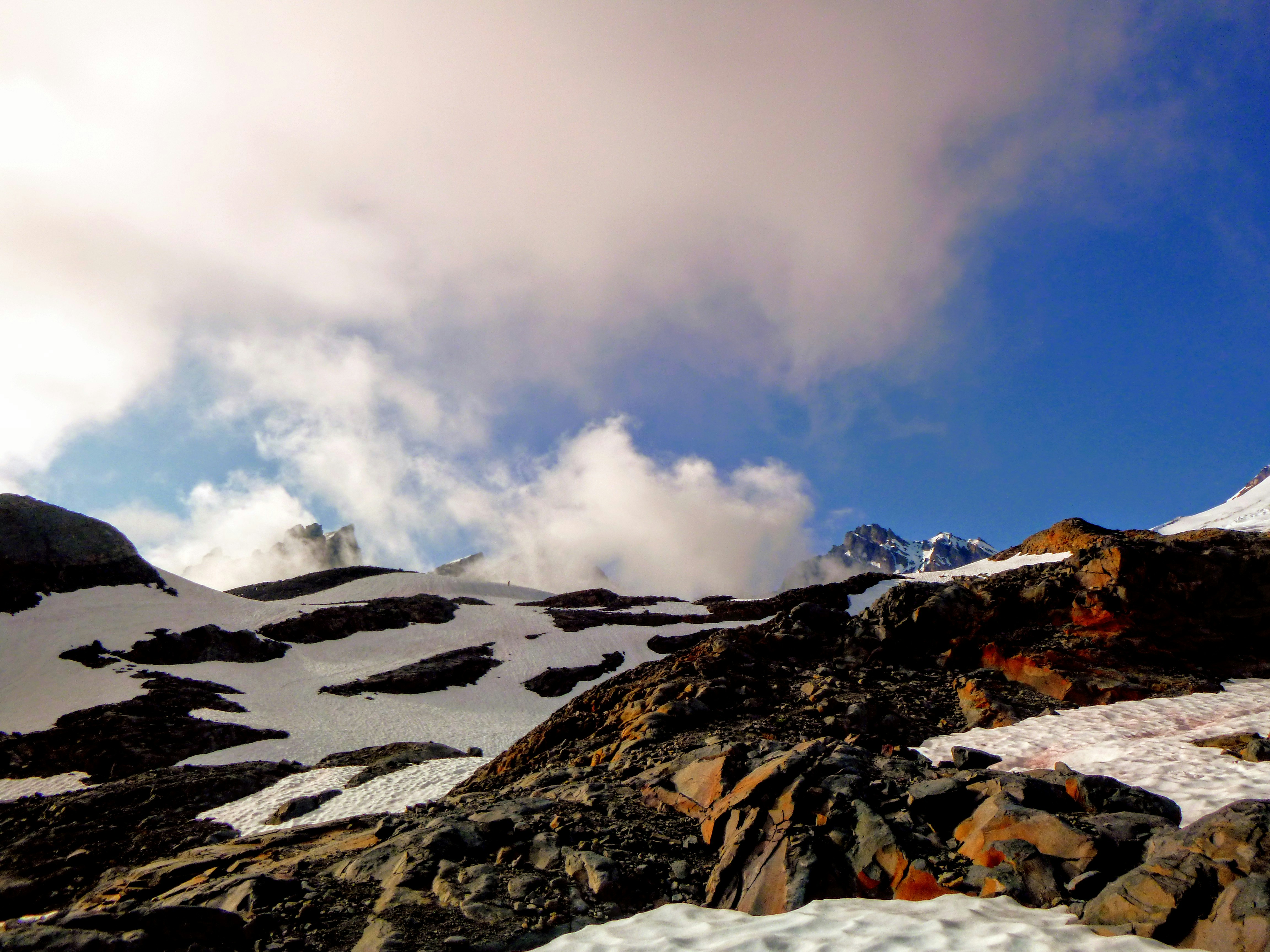 The town of 48.889968-121.9466511 Glacier has a few restaurants, lodges, and the last services before the rural highway arrives at the ski resort. From there, every listing is accessed from WA-542, the Mount Baker Highway. 48.8617-121.65461 Mount Baker Ski Area, ☏ +1 360-734-6771. Has seven lifts, covering 1500 ft (455 m) elevation gain. The area claims typical snowfall of 647 inches (1,638 cm) per year. (updated May 2023) Heather Meadows lodge is a good starting point for gear rental and has direct access to the bunny slope. The Mt. Baker area is covered with hiking trails, accessible as soon as the snow melts. 48.84674-121.69272 Artist Point, at the end of the road, is the trailhead for many popular hikes, including the demanding climb of Table Mountain, the stimulating variety of Chain Lakes Loop and the awe inspiring closeness of the mountain itself at Ptarmigan Ridge.