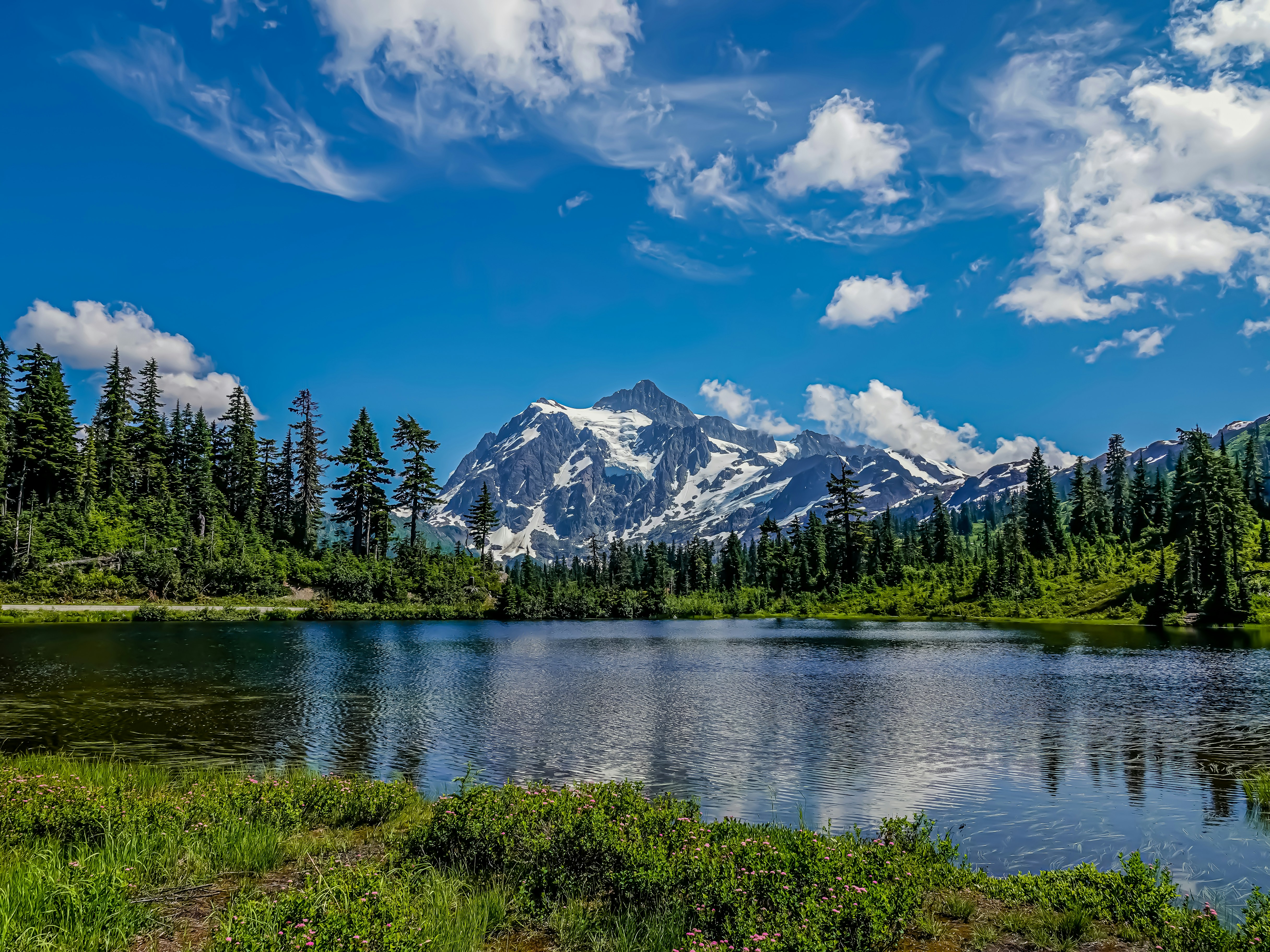 48.7766-121.81441 Mount Baker in the Mt. Baker-Snoqualmie National Forest is a major outdoor recreation area east of Bellingham in northwest Washington State. It is one of the five major stratovolcanoes in the state that have produced over 200 eruptions in the last 12,000 years. Mount Baker has worn several appellations in its 400,000 years. Long before white settlers came, Nooksack Indians called it quck-sman-ik, meaning "white mountain." The Lummi Indians near Bellingham Bay called it kulshan, meaning "broken off." Presumably, they were referring to the frequent volcanic activity.