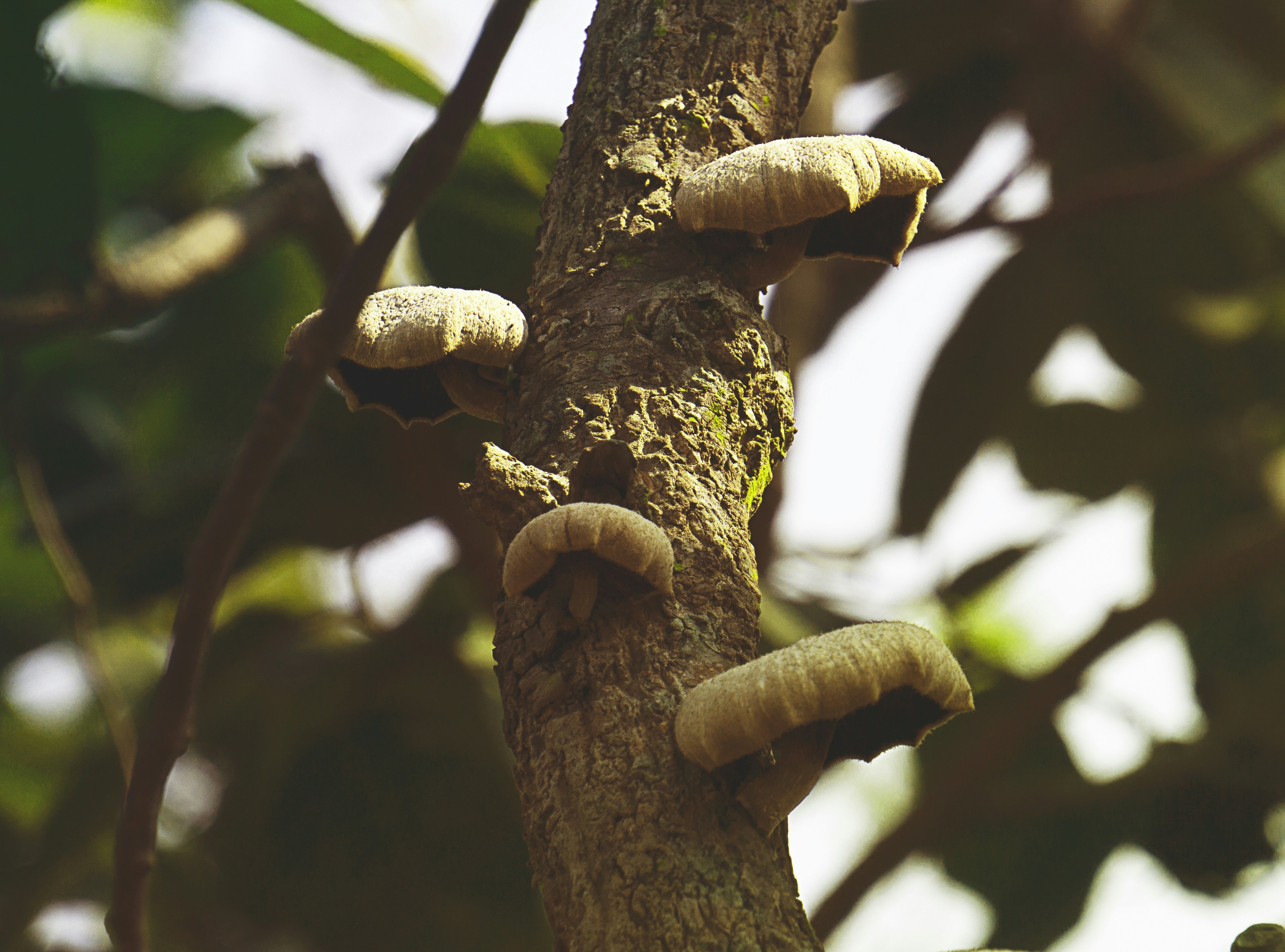 White and brown mushroom on brown tree branch photo