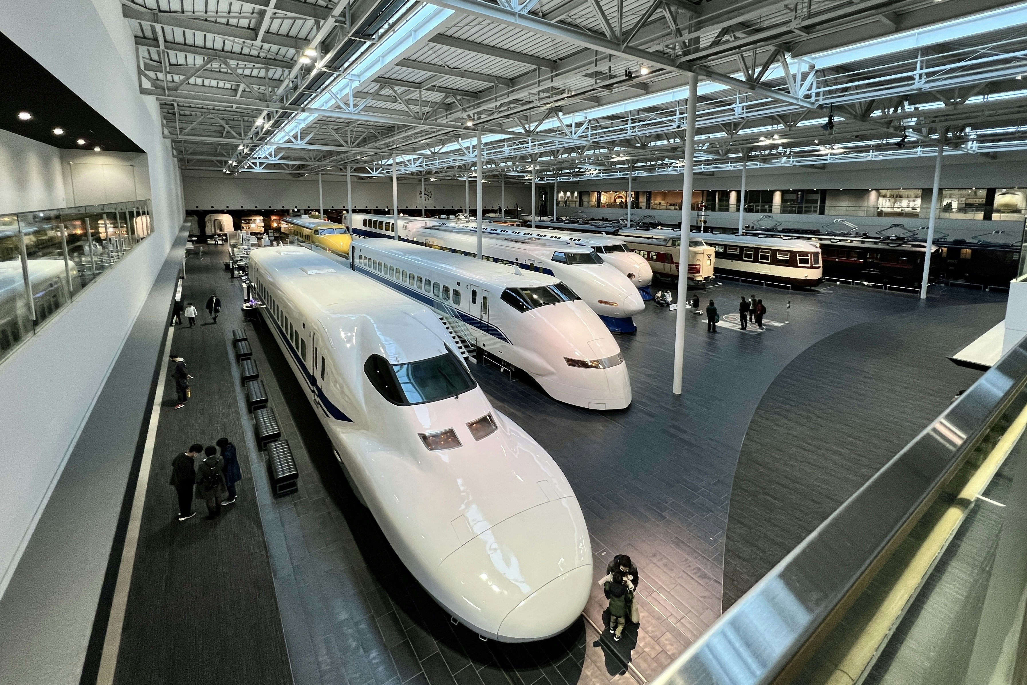 a couple of trains that are in a building