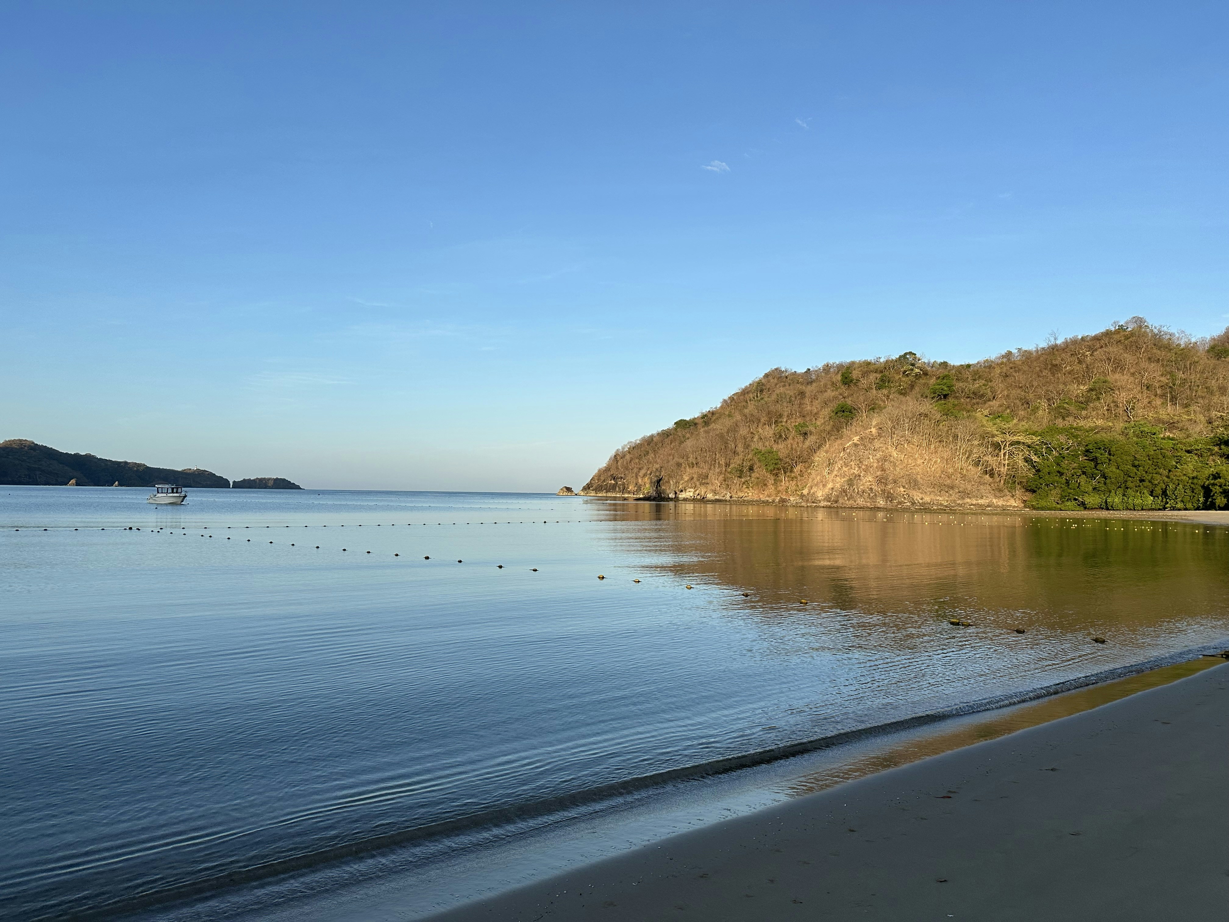 A beach with a hill in the background
