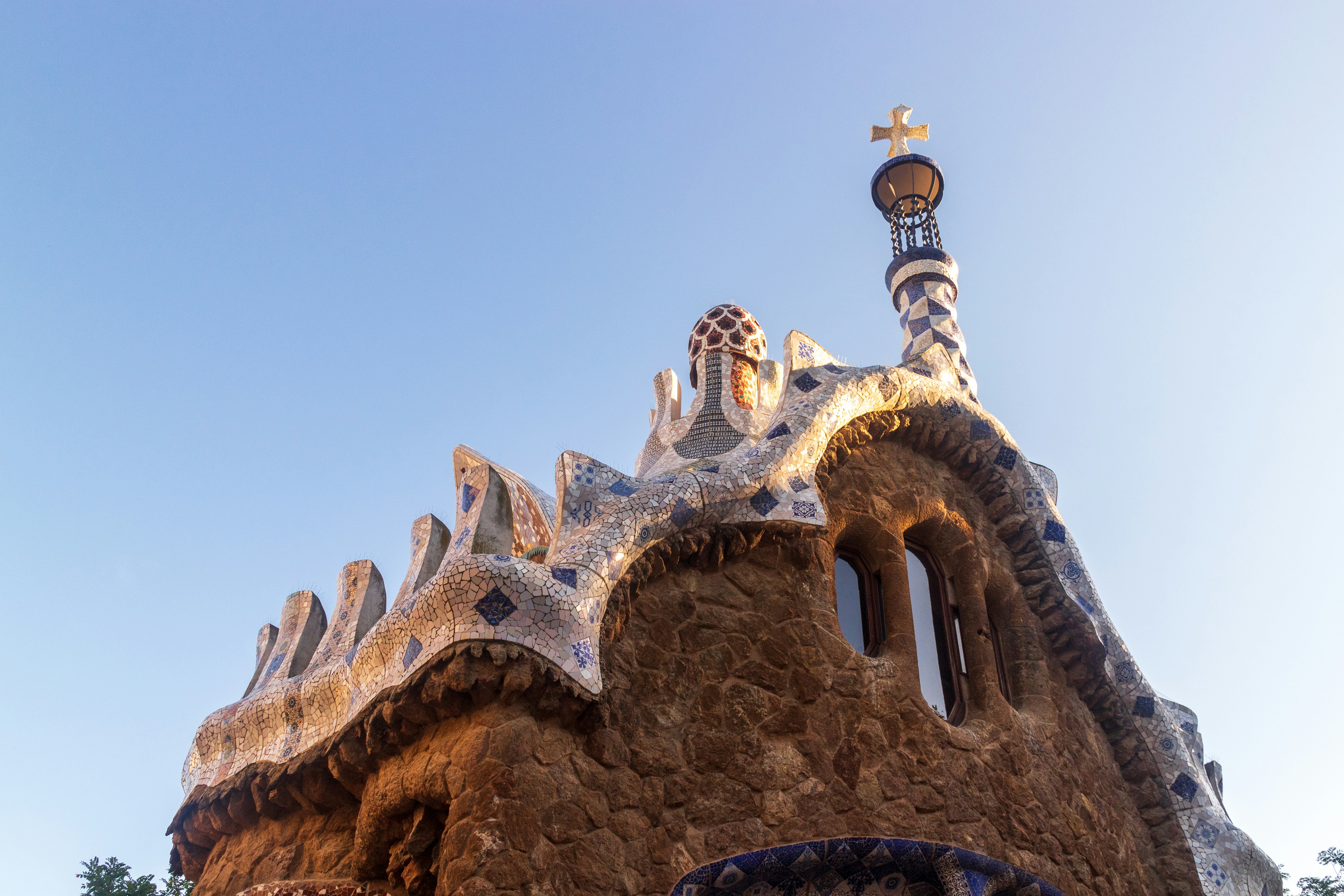 ⛪A slender tower rises over Park Güell in Barcelona, Spain, crowned by a decorative cross. The structure’s mosaic-covered details and textured silhouette echo Antoni Gaudí’s whimsical architectural style. Surrounded by vibrant gardens and the city's skyline, the tower feels both spiritual and artistic—a beacon in the heart of Catalonia.