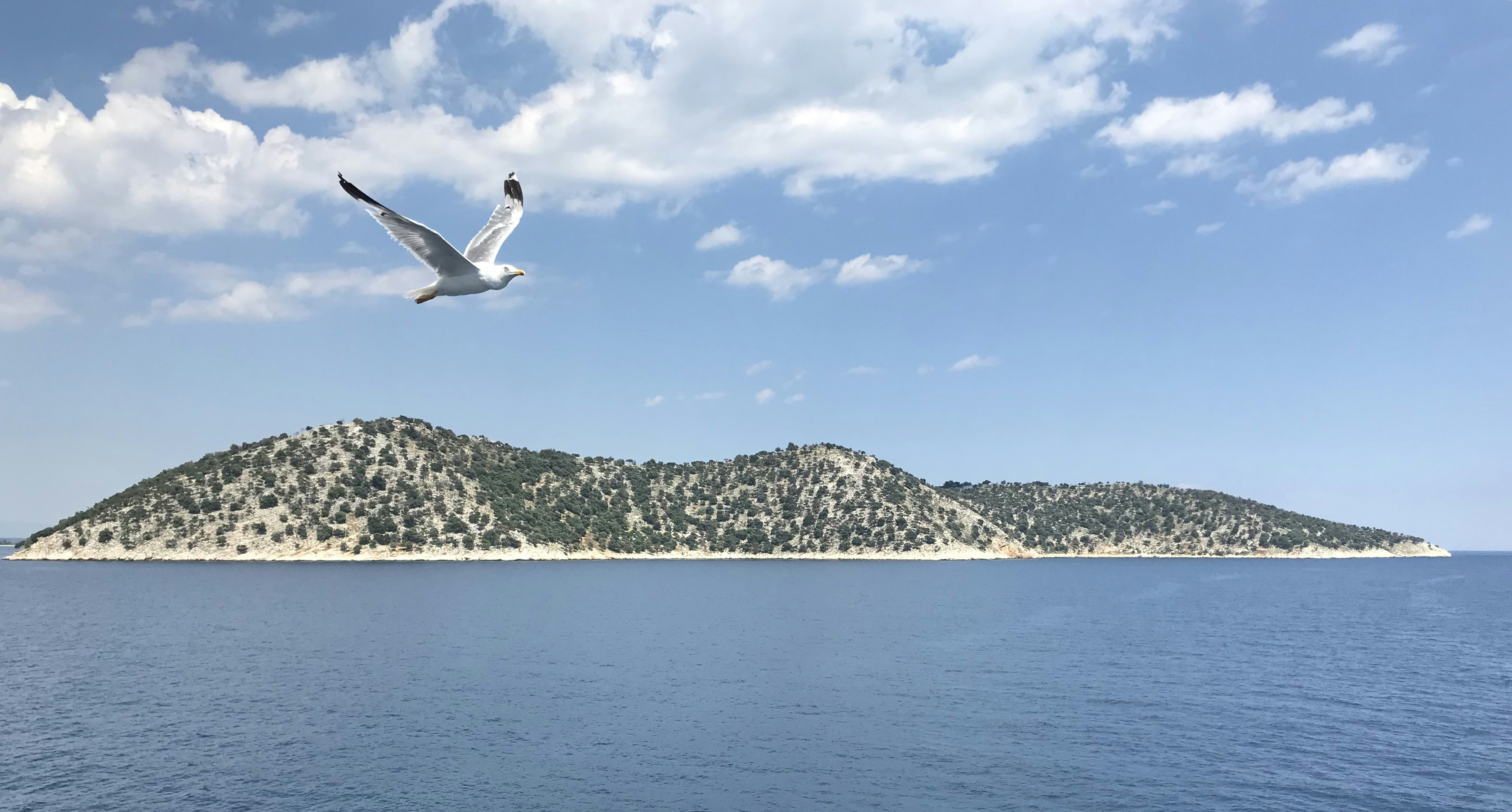 seagull flying over sea