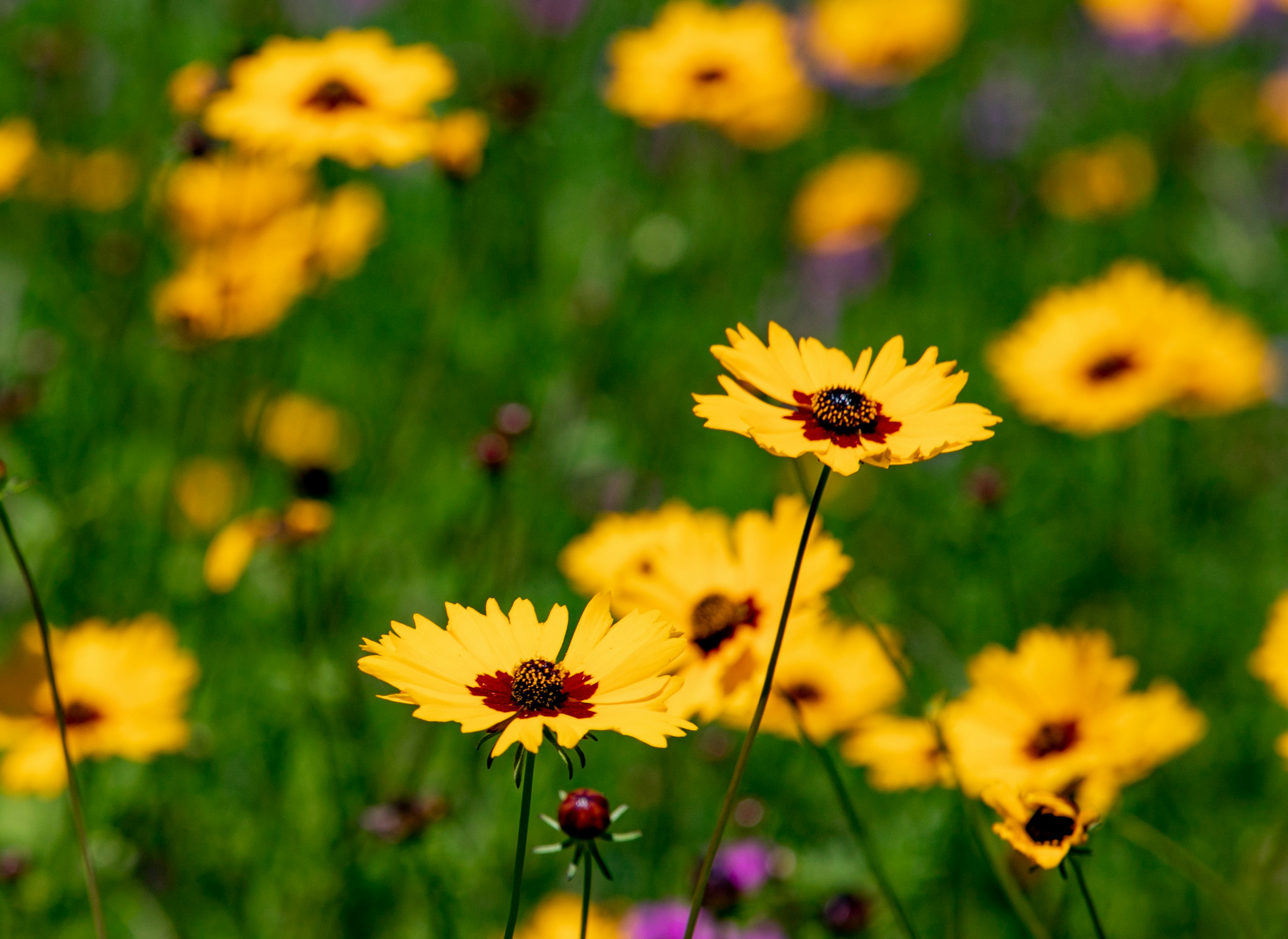yellow flower in tilt shift lens