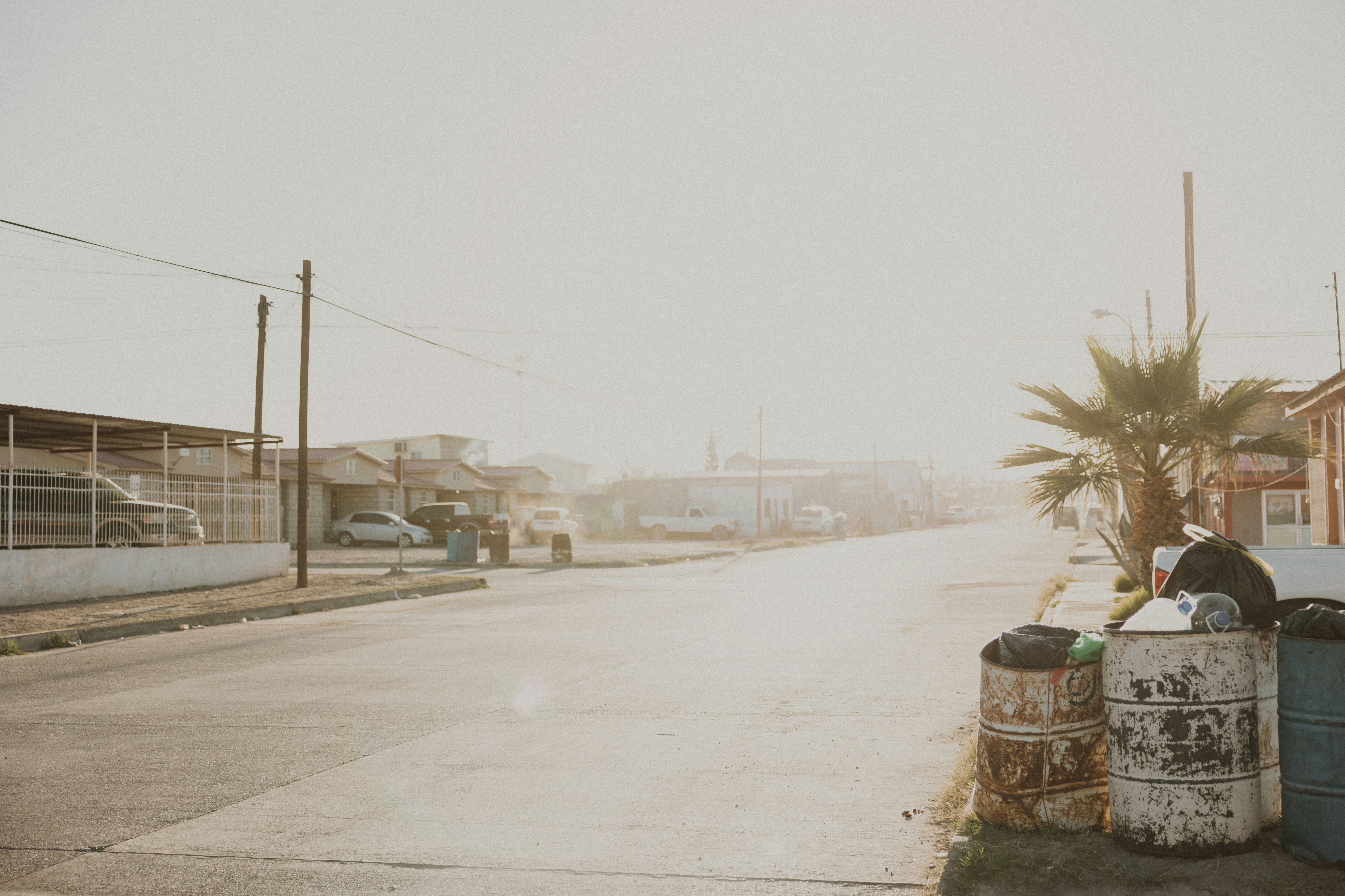 a road with a fence and trees on the side