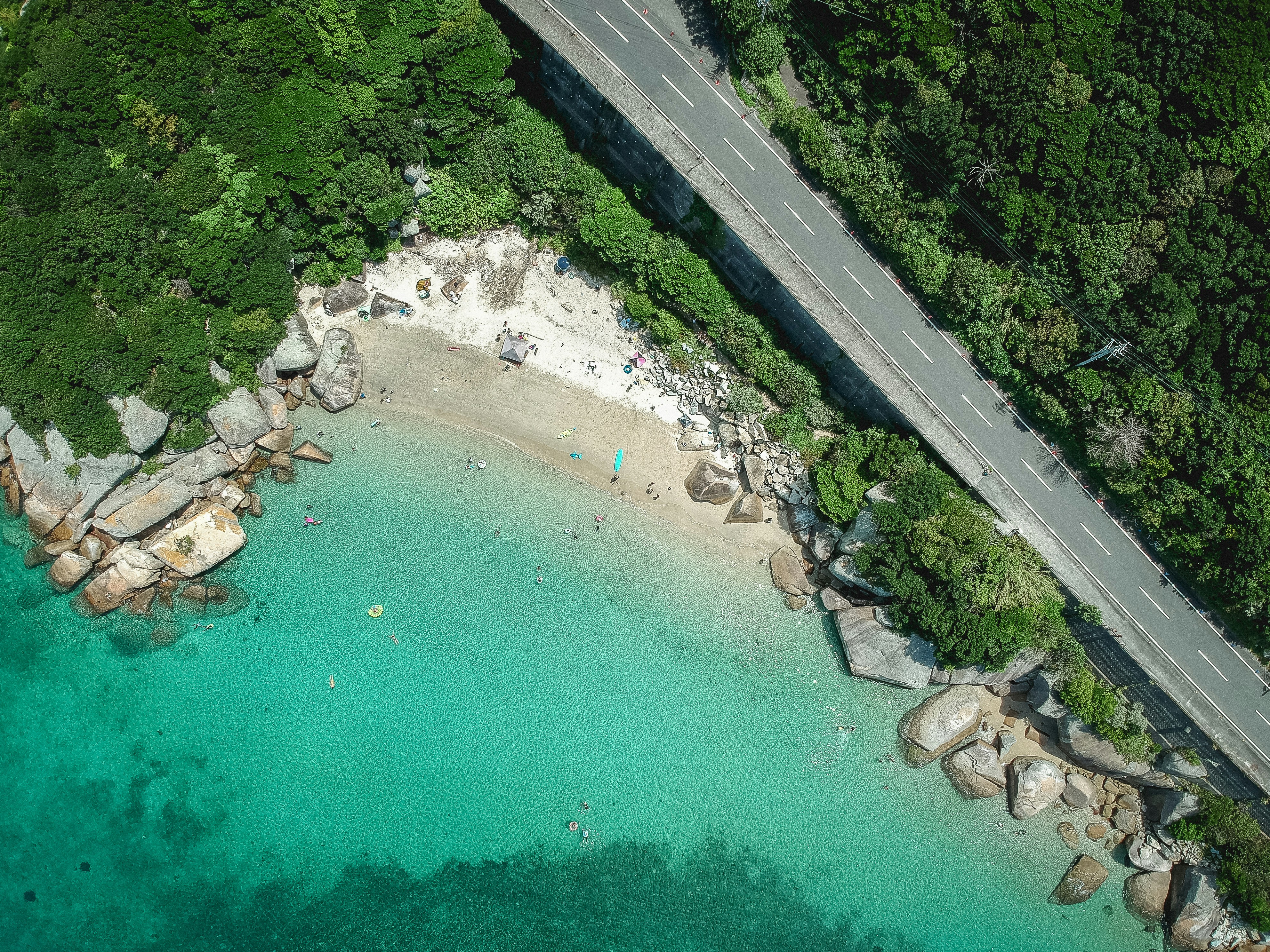 aerial photography of road beside body of water during daytime