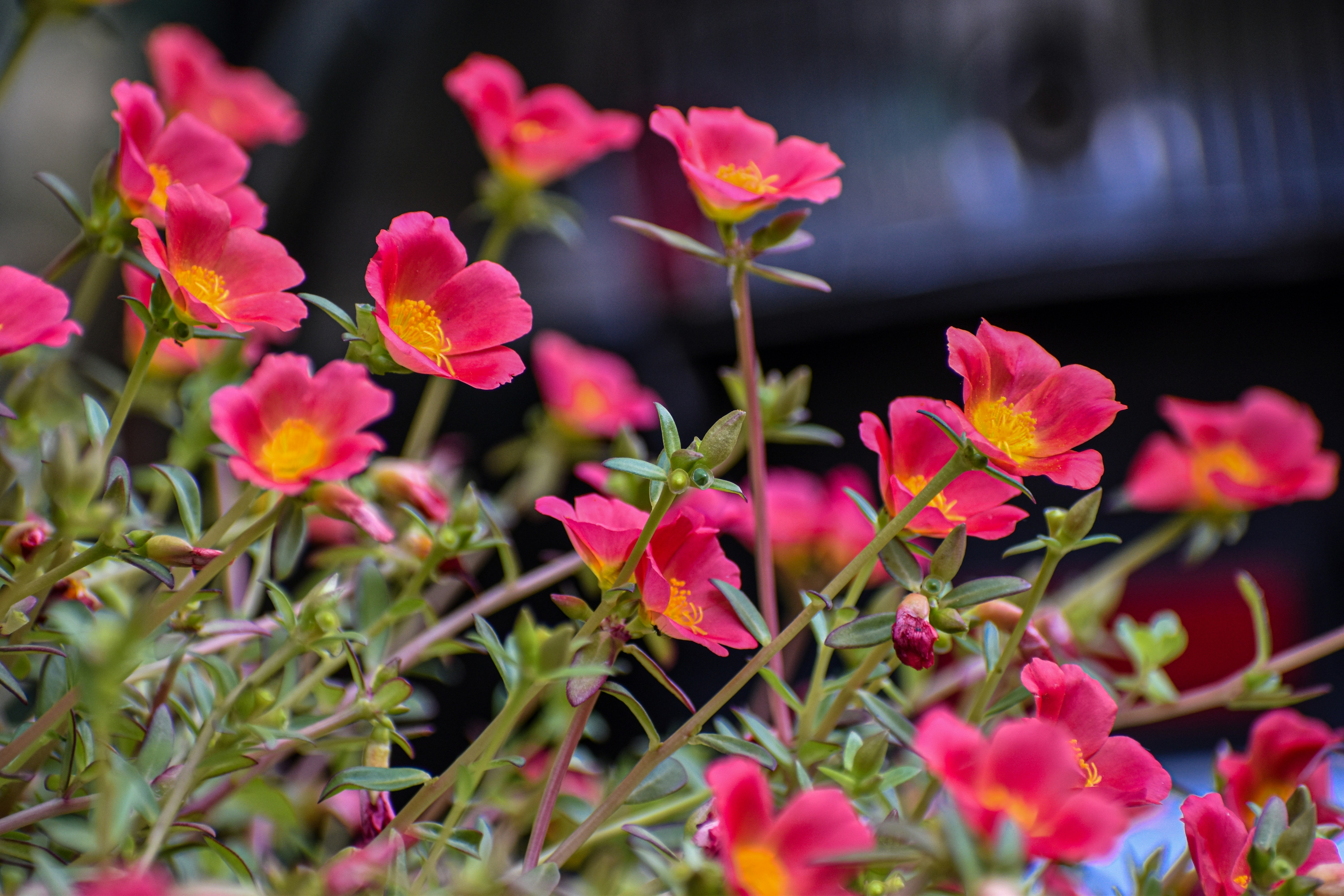 red flowers with green leaves