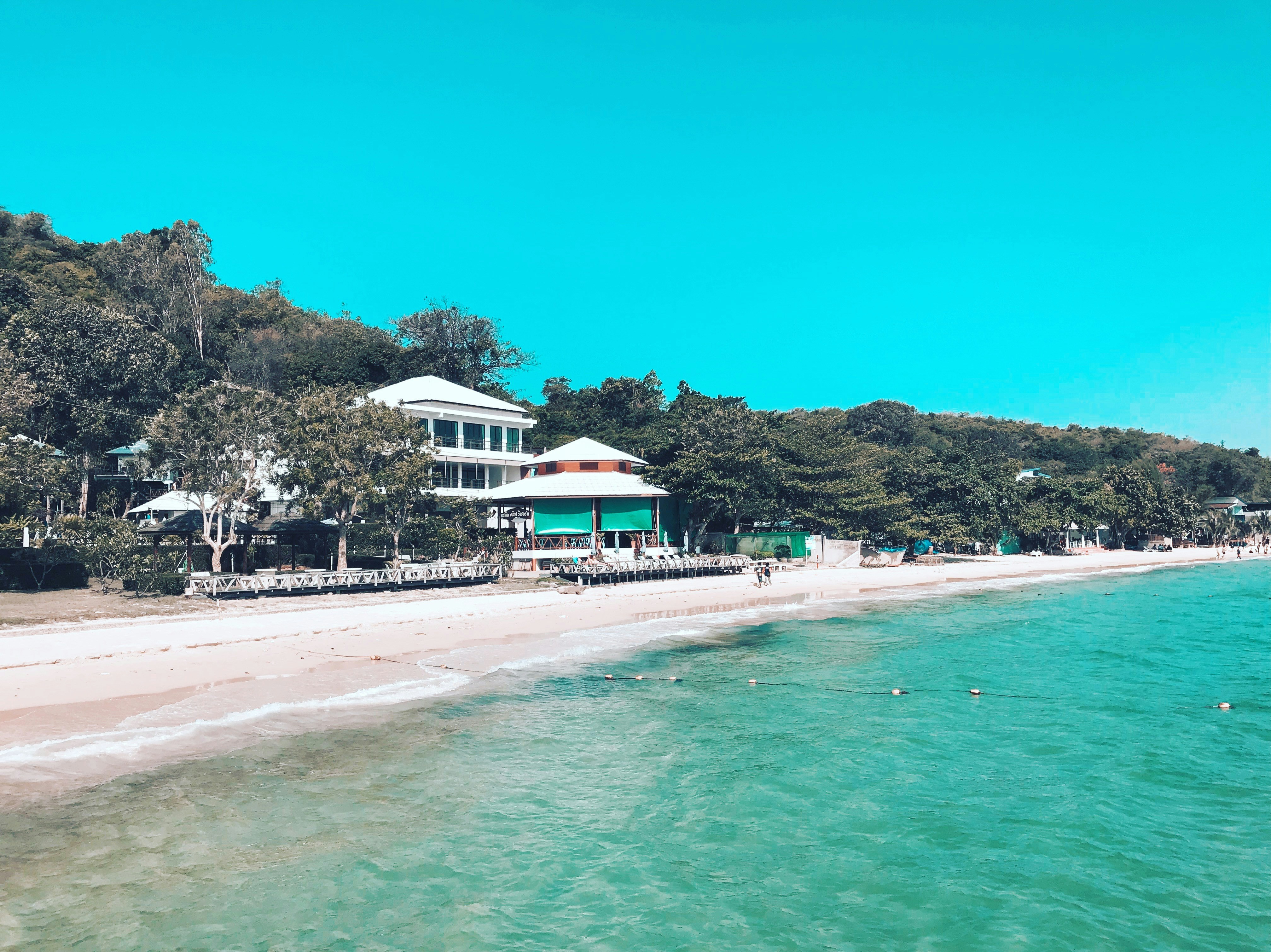 white and green house near body of water during daytime
