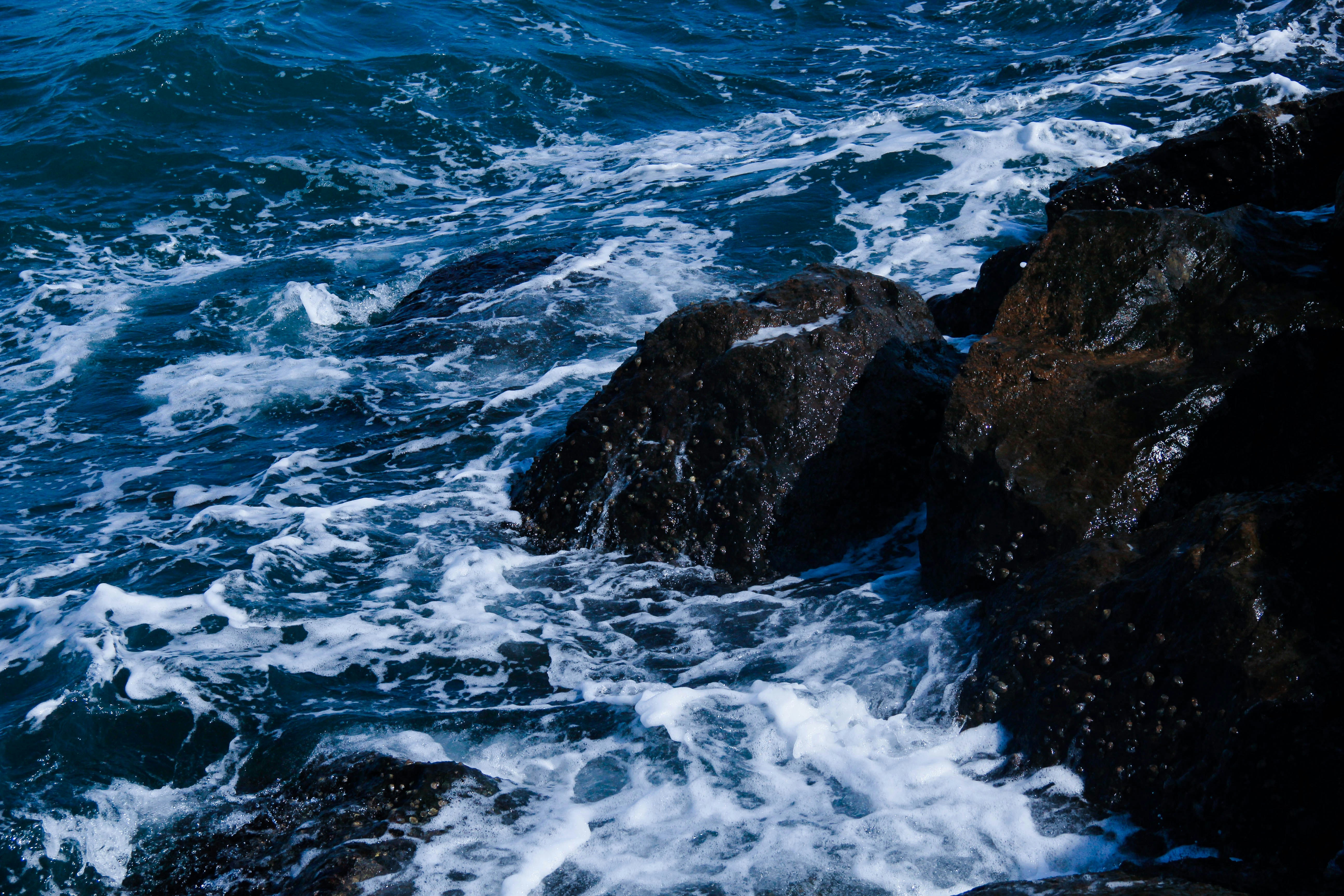 ocean waves crashing on rocky shore during daytime