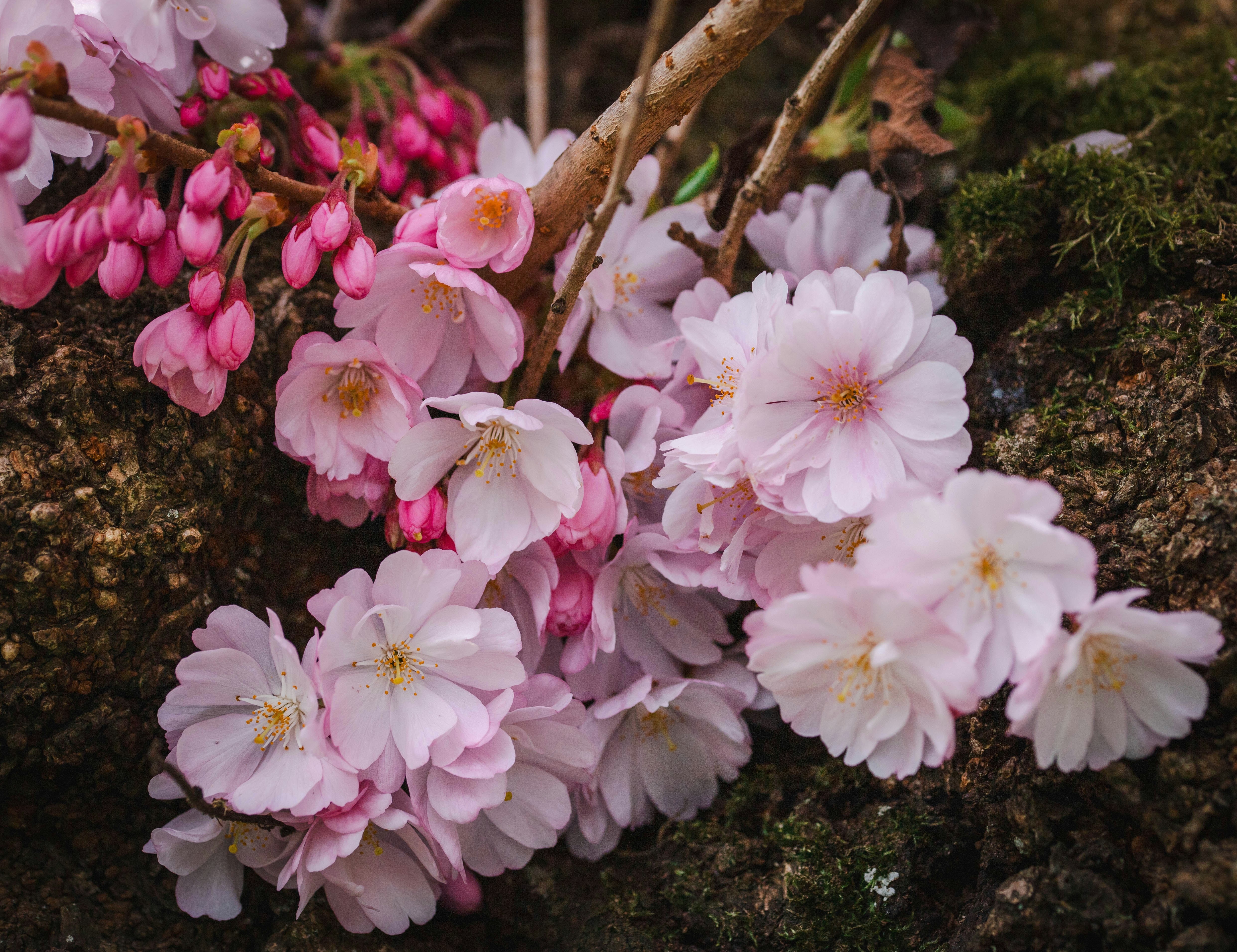 Pretty pink cherry blossoms are in full bloom.